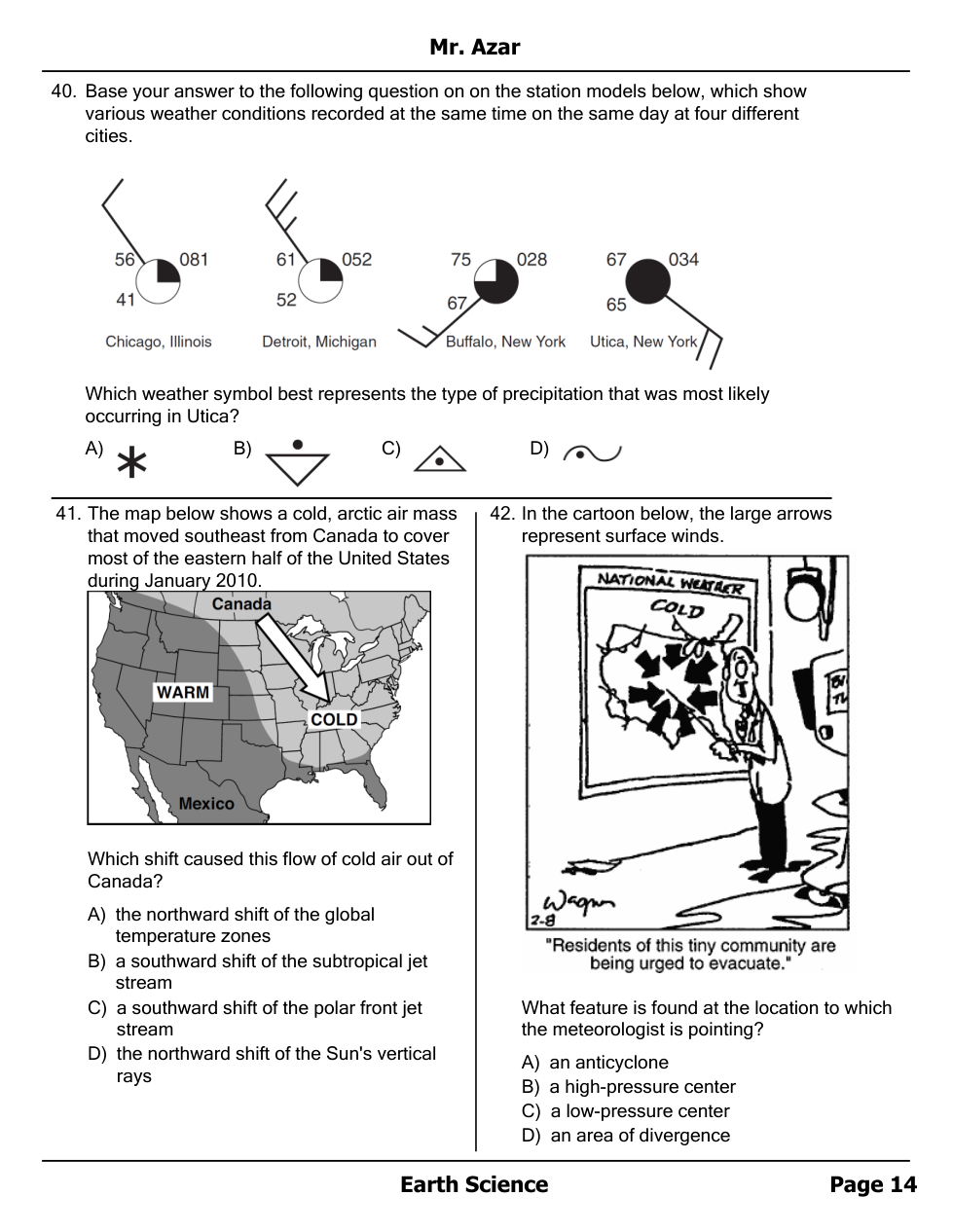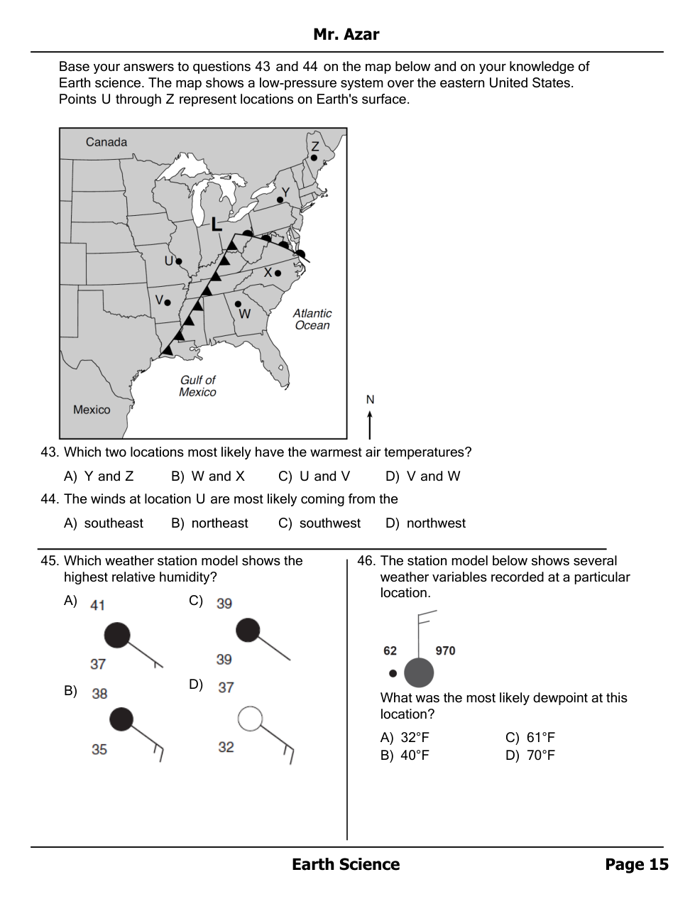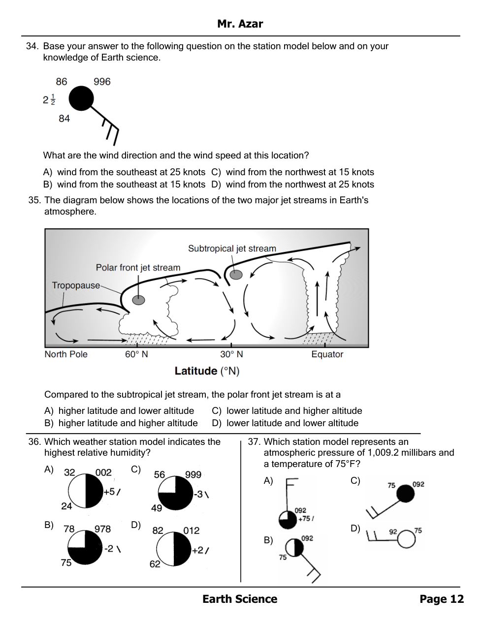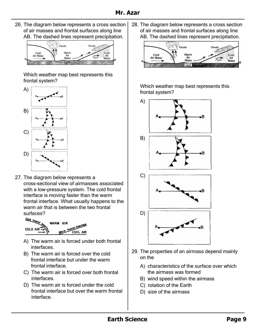Air masses, Fronts and Station Models