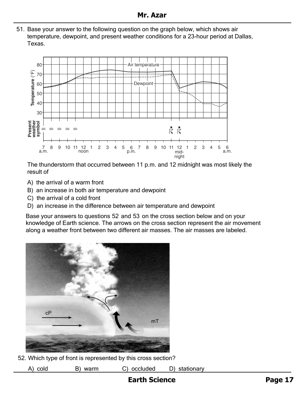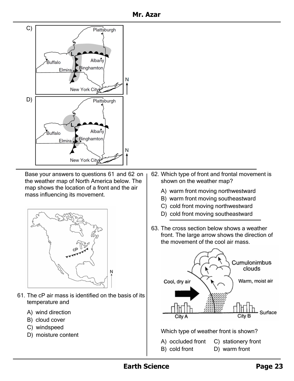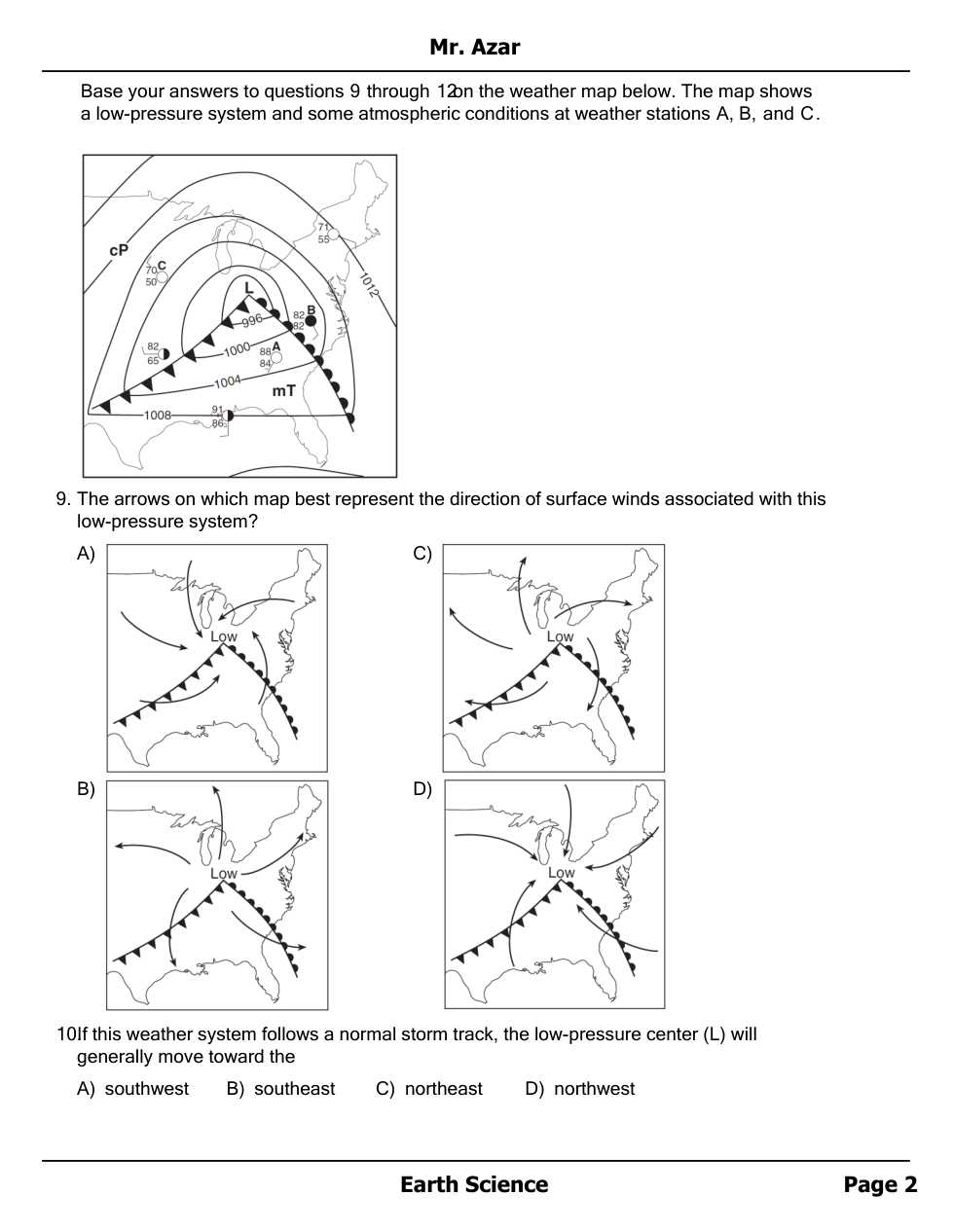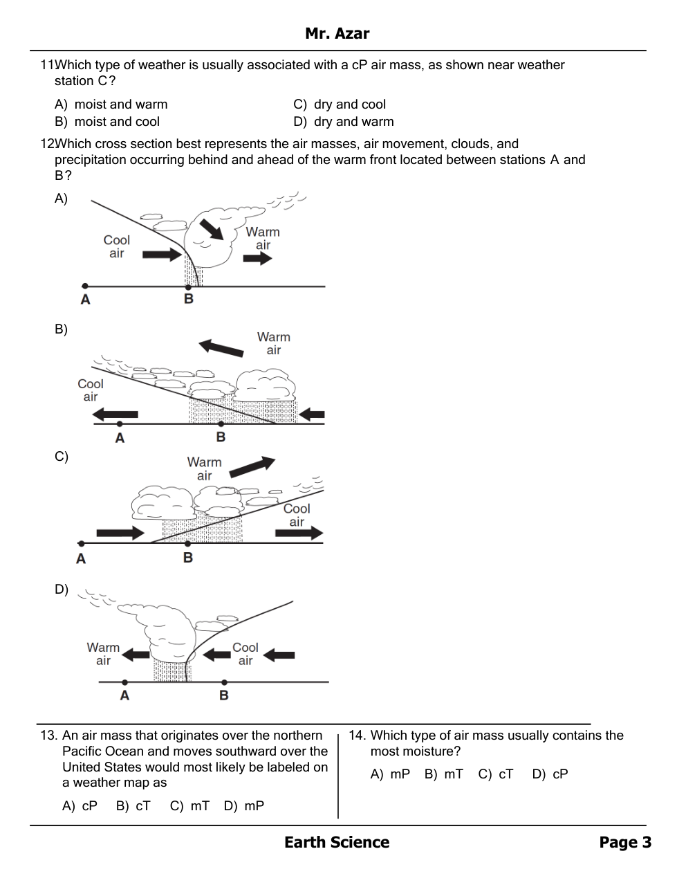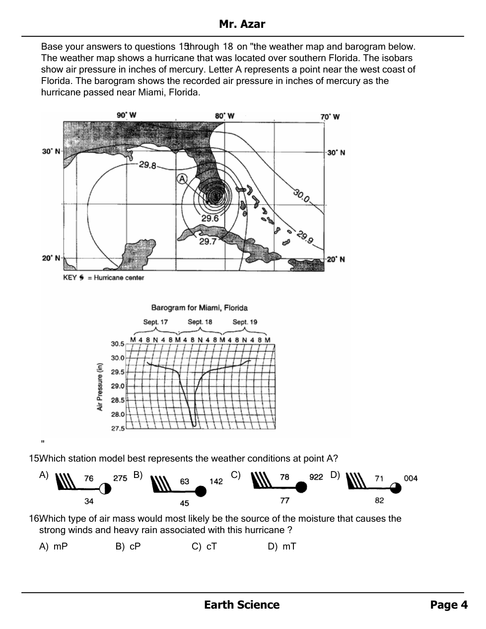 Air masses, Fronts and Station Models