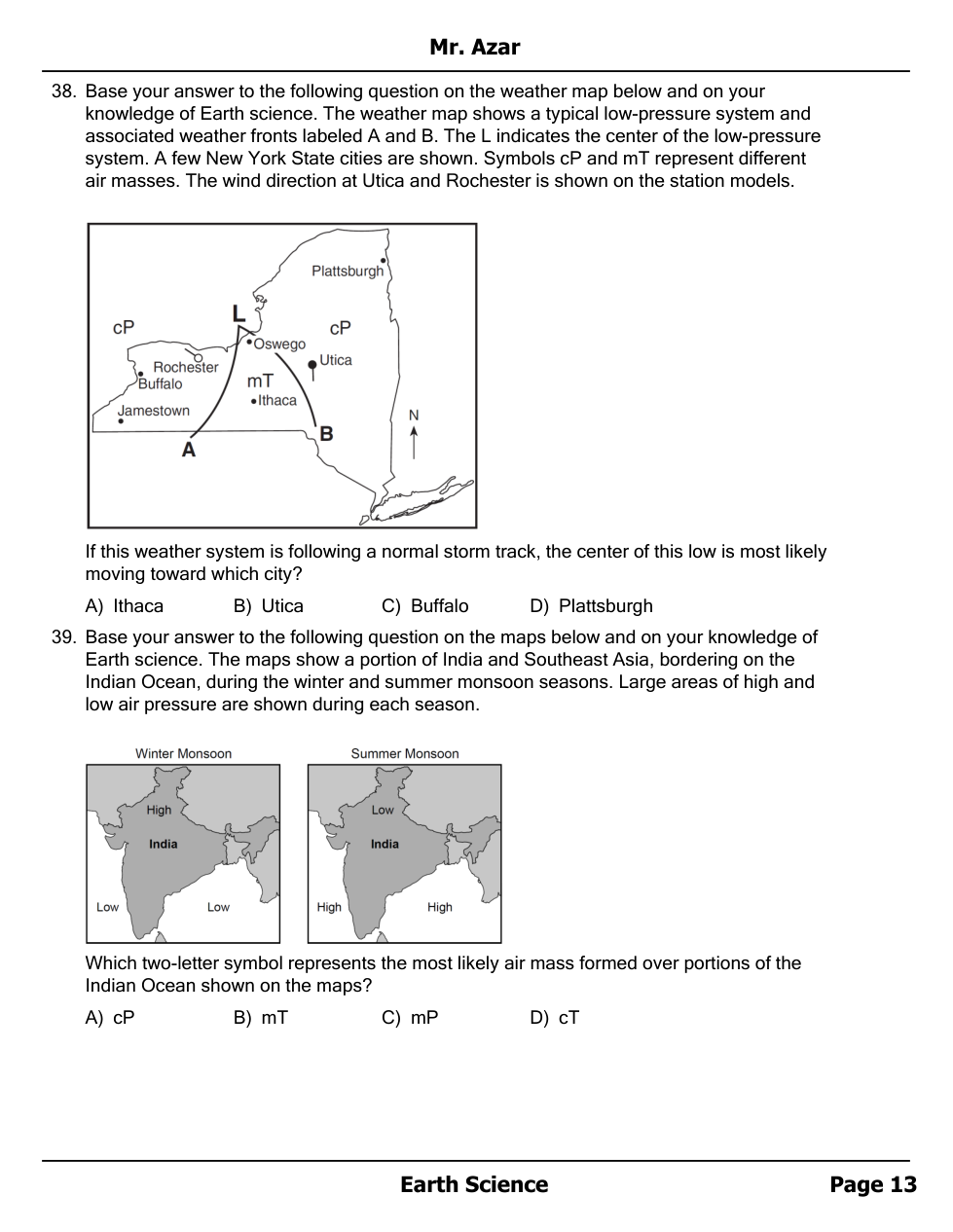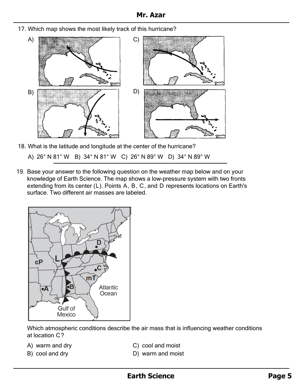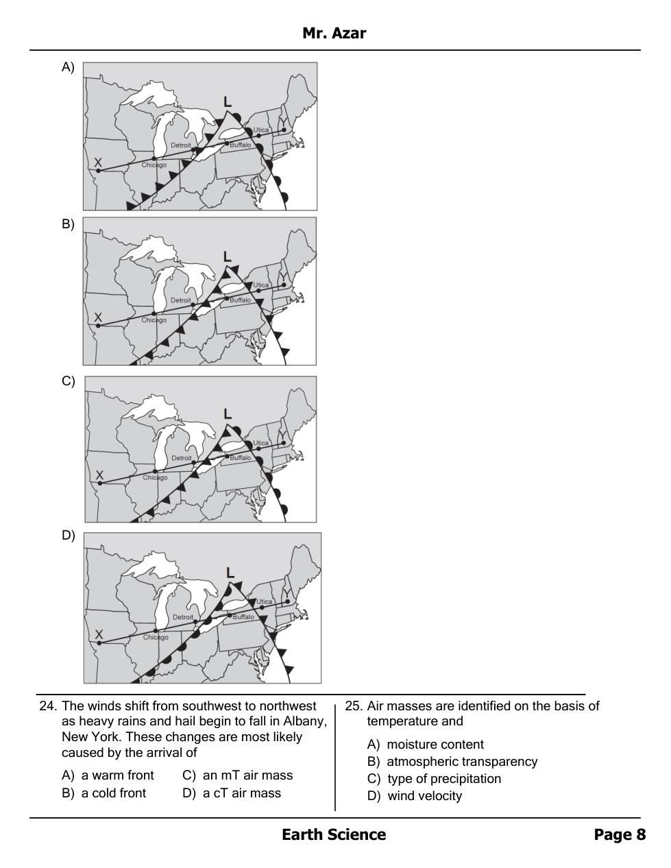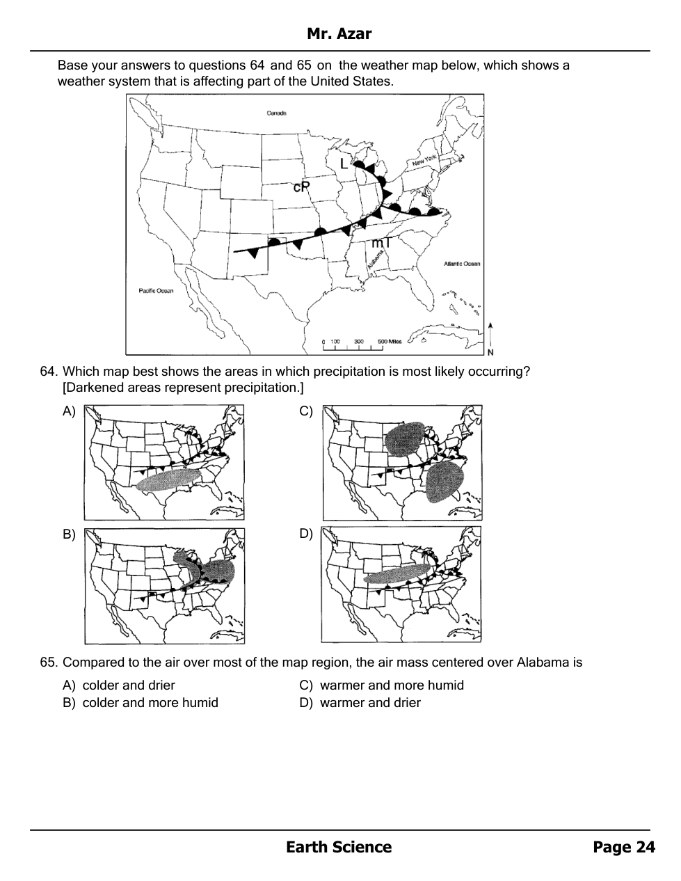 Air masses, Fronts and Station Models