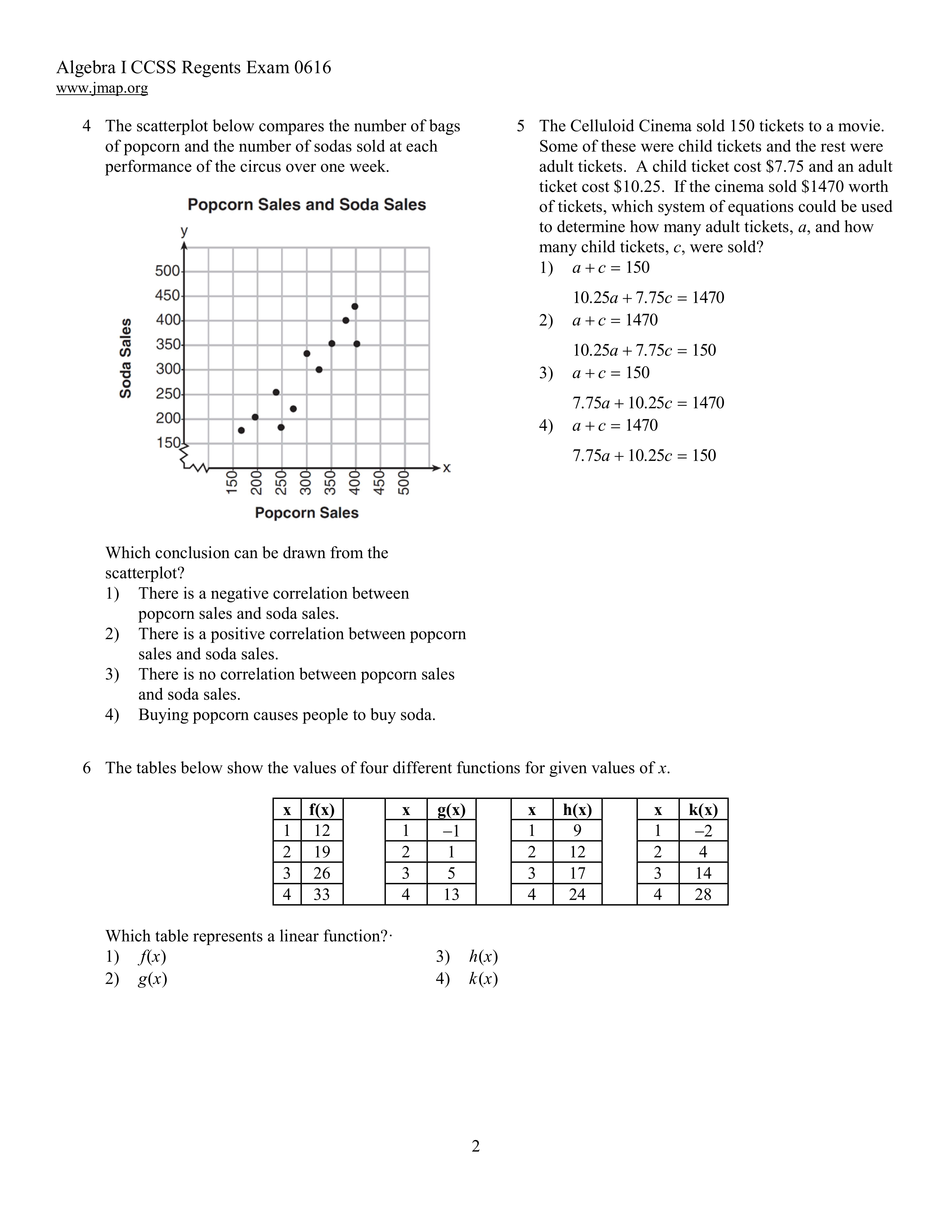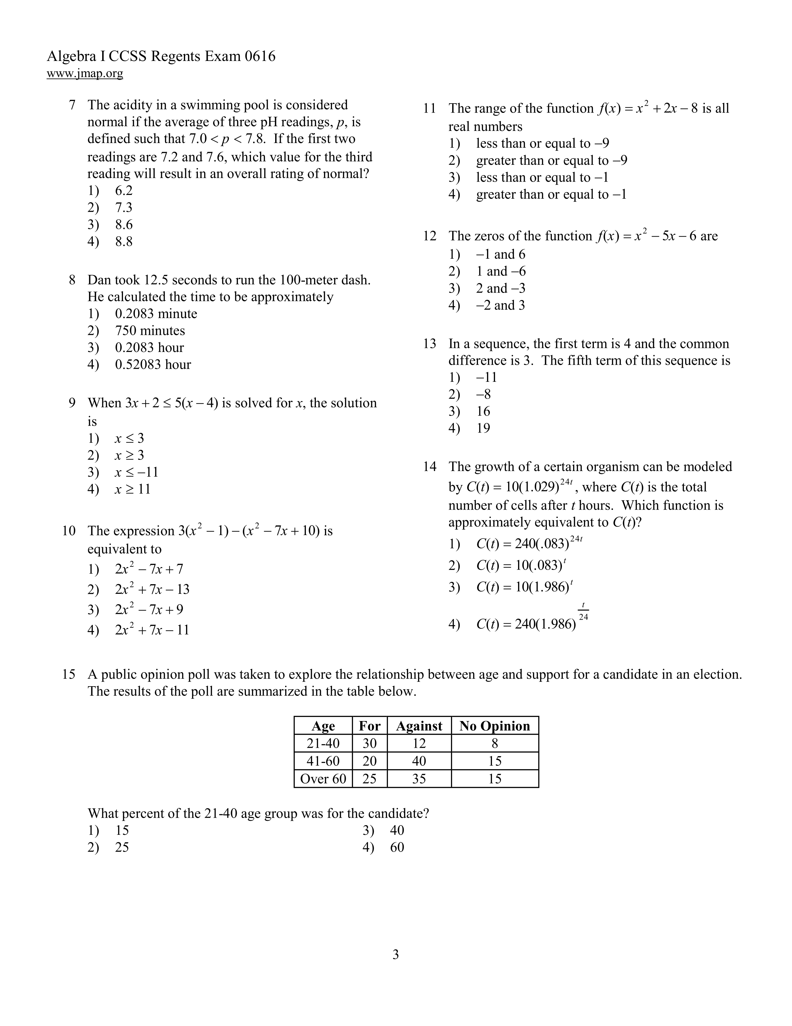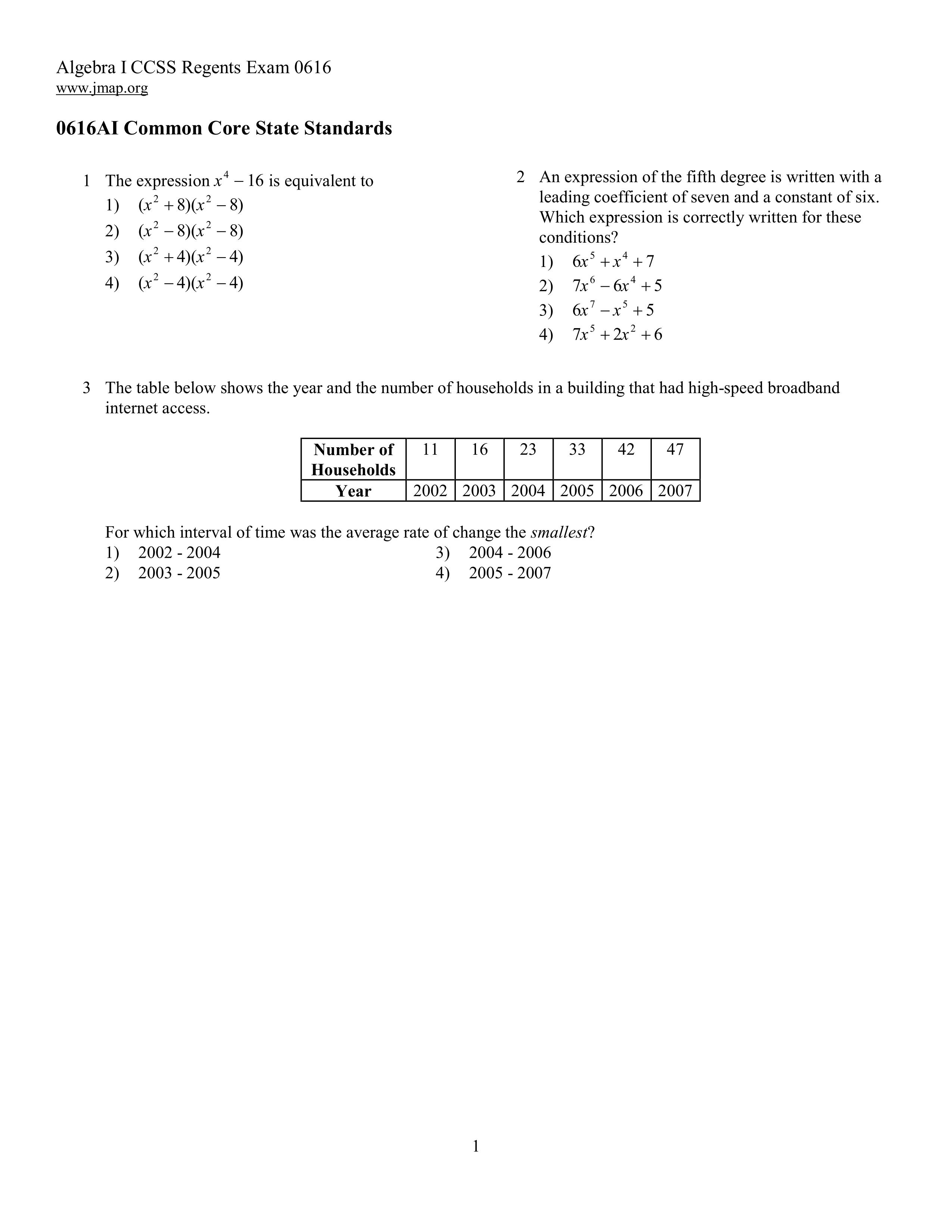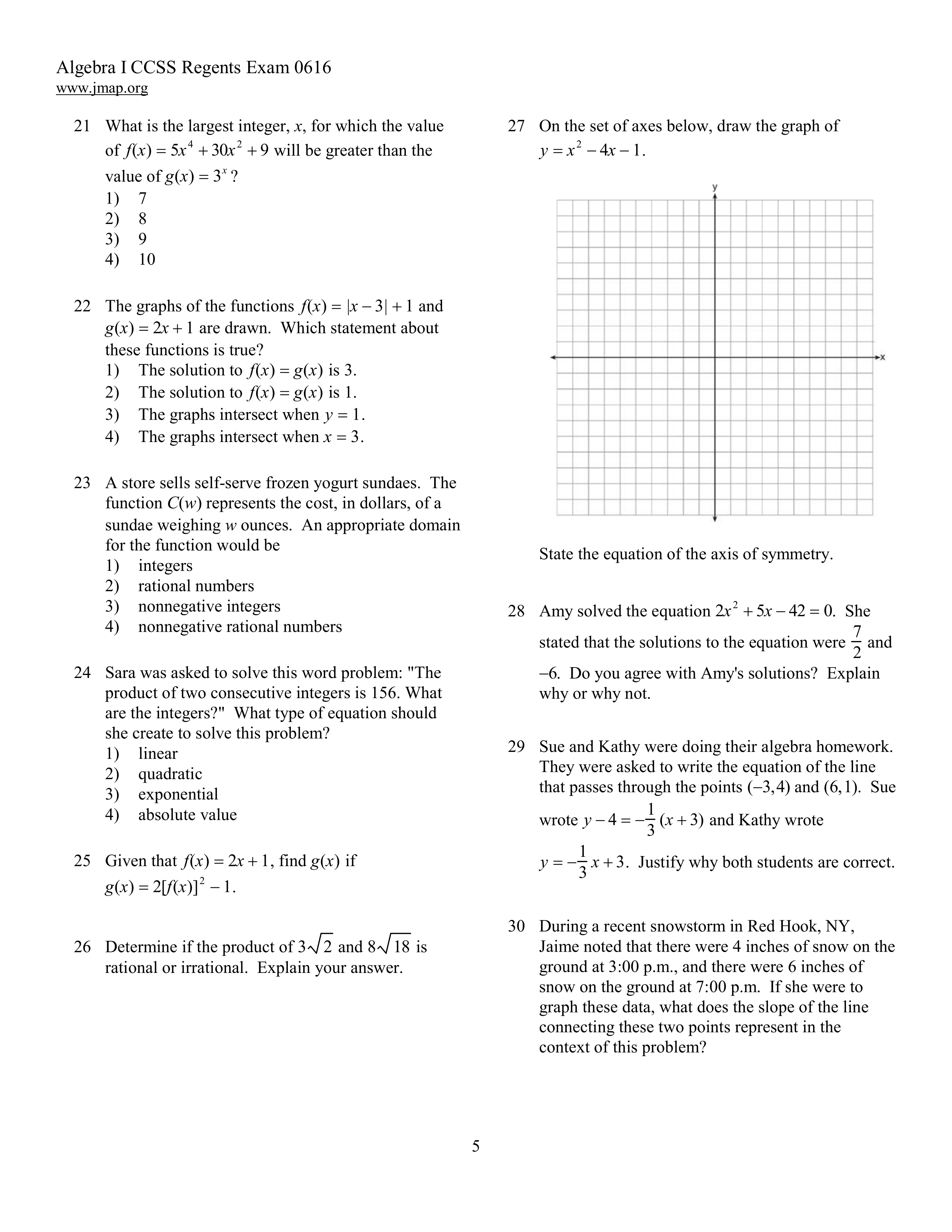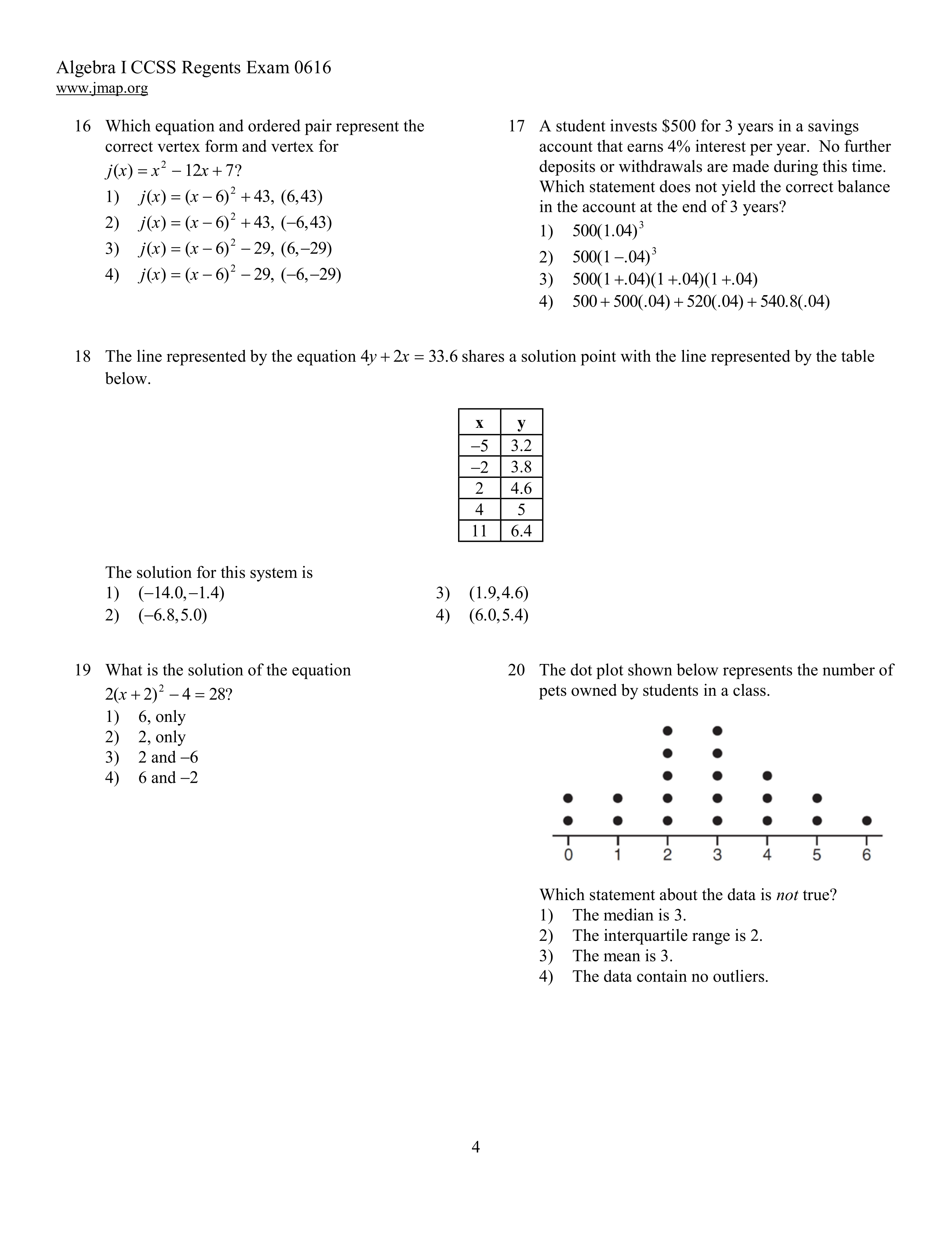 Algebra 1 Regents June 2016