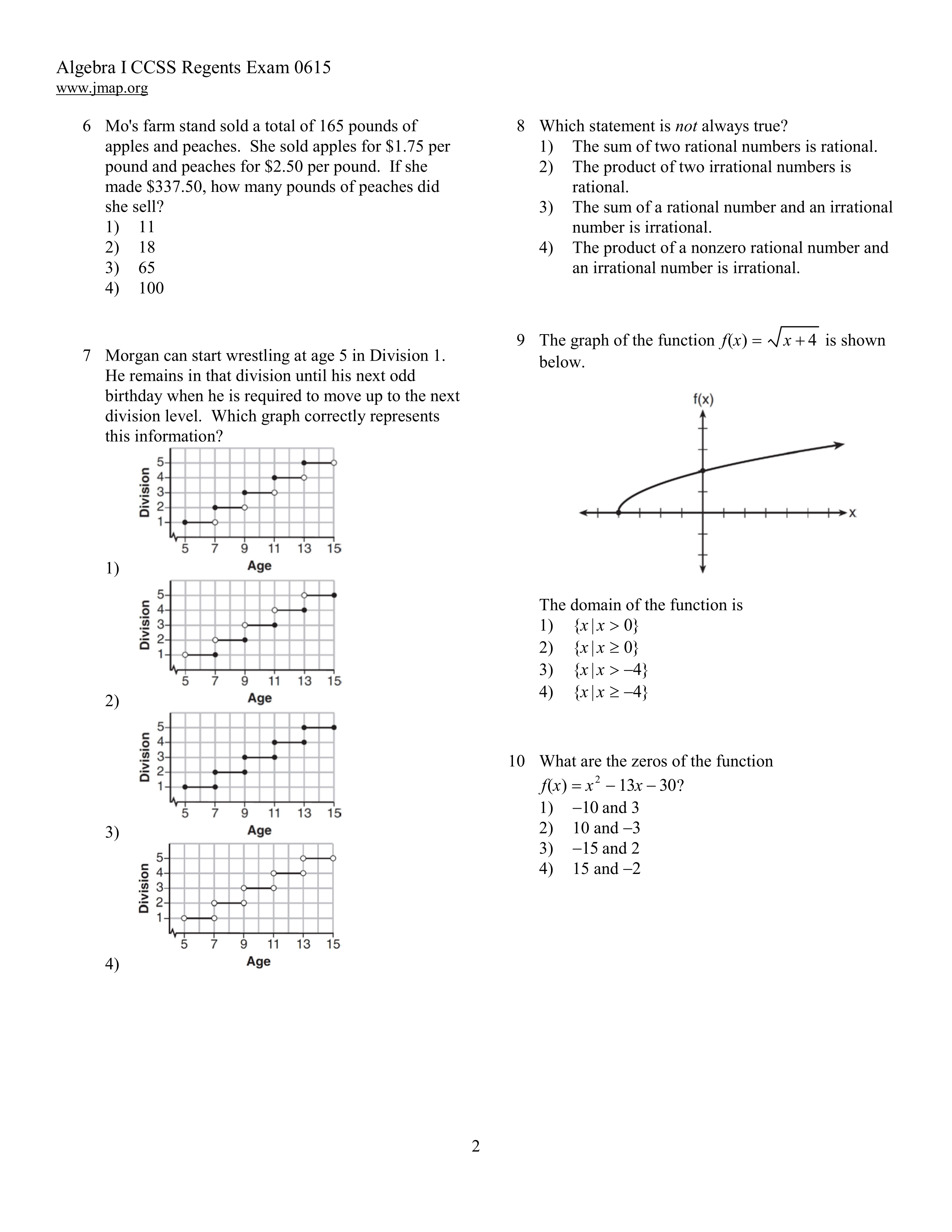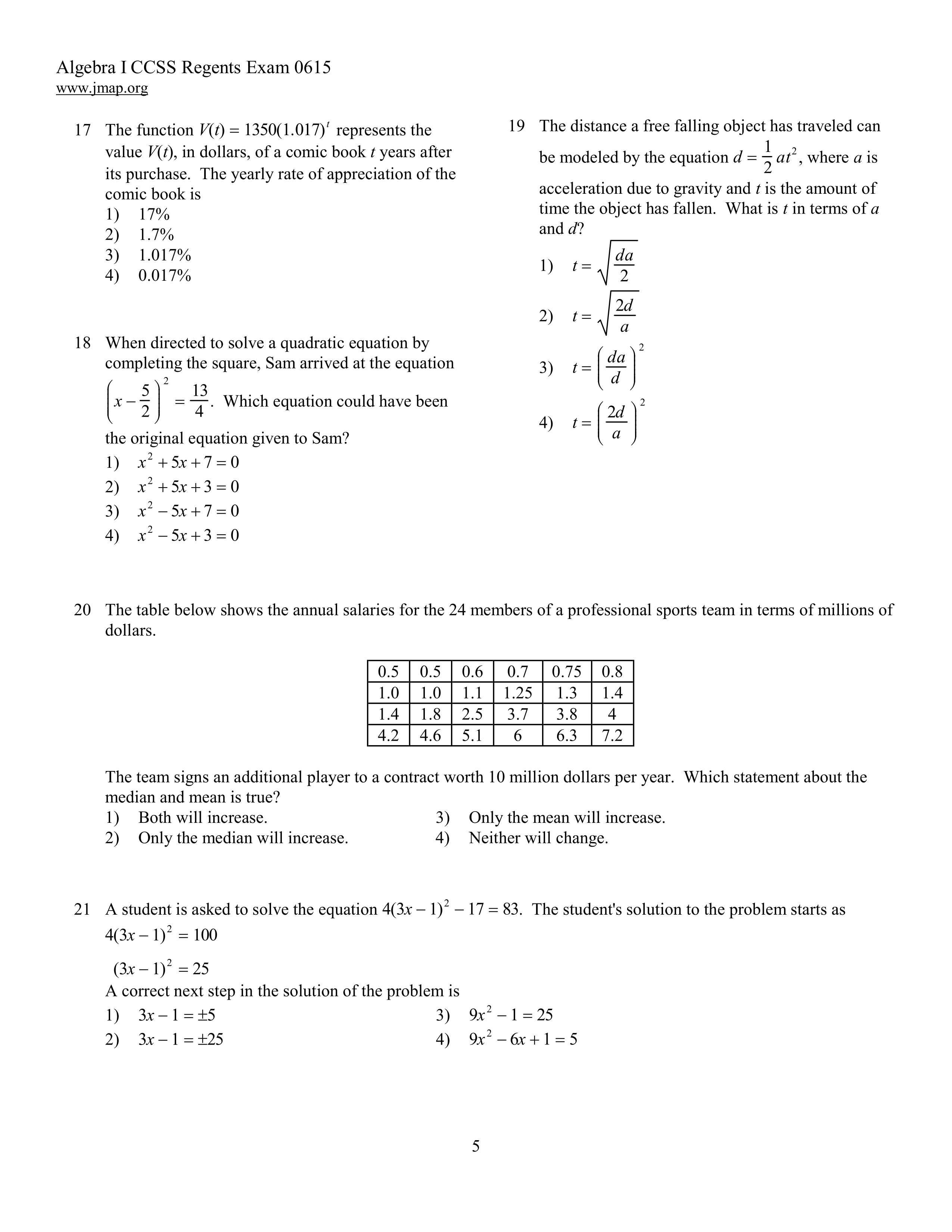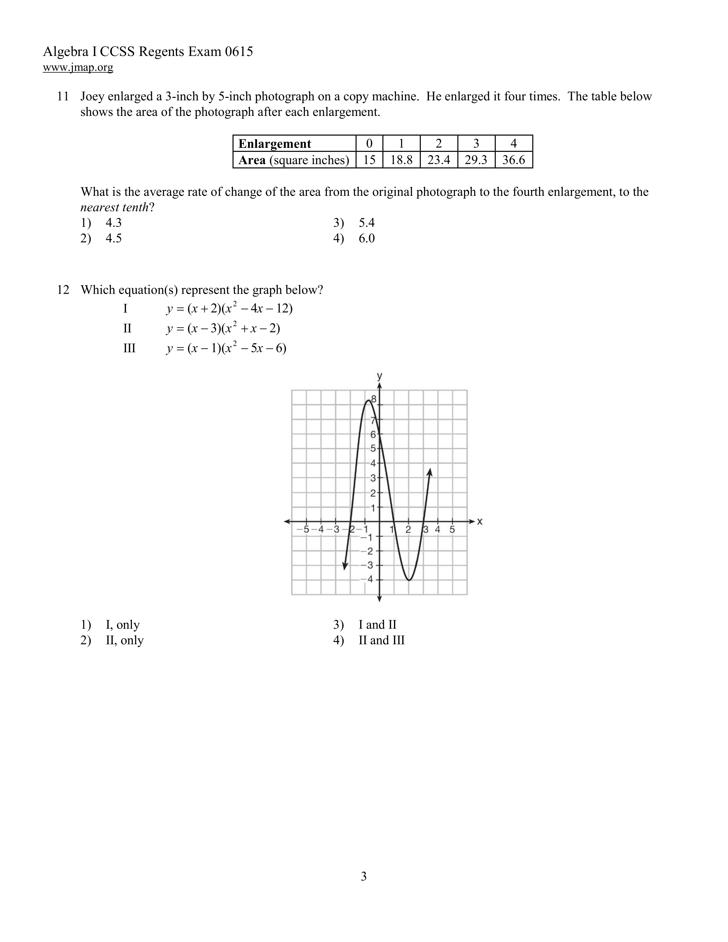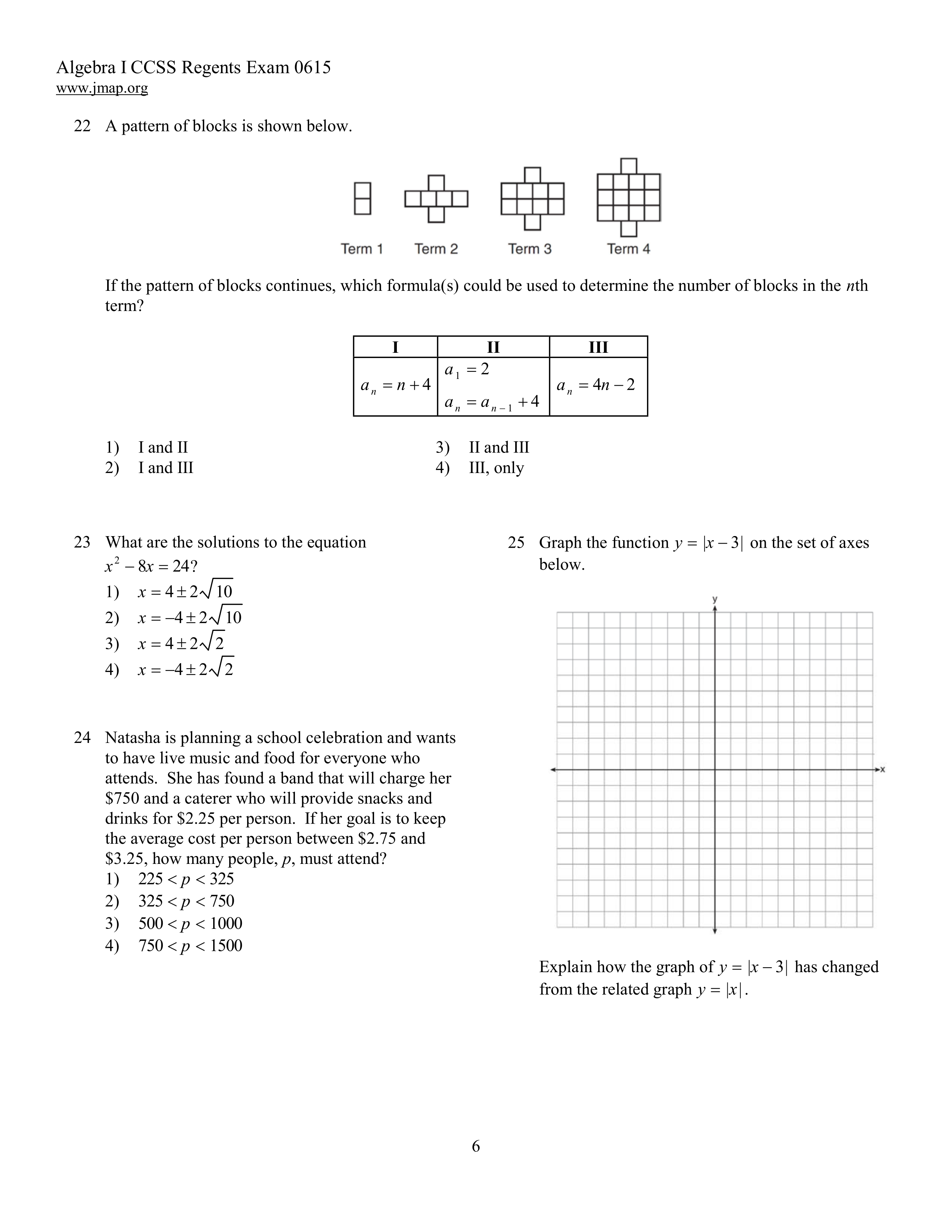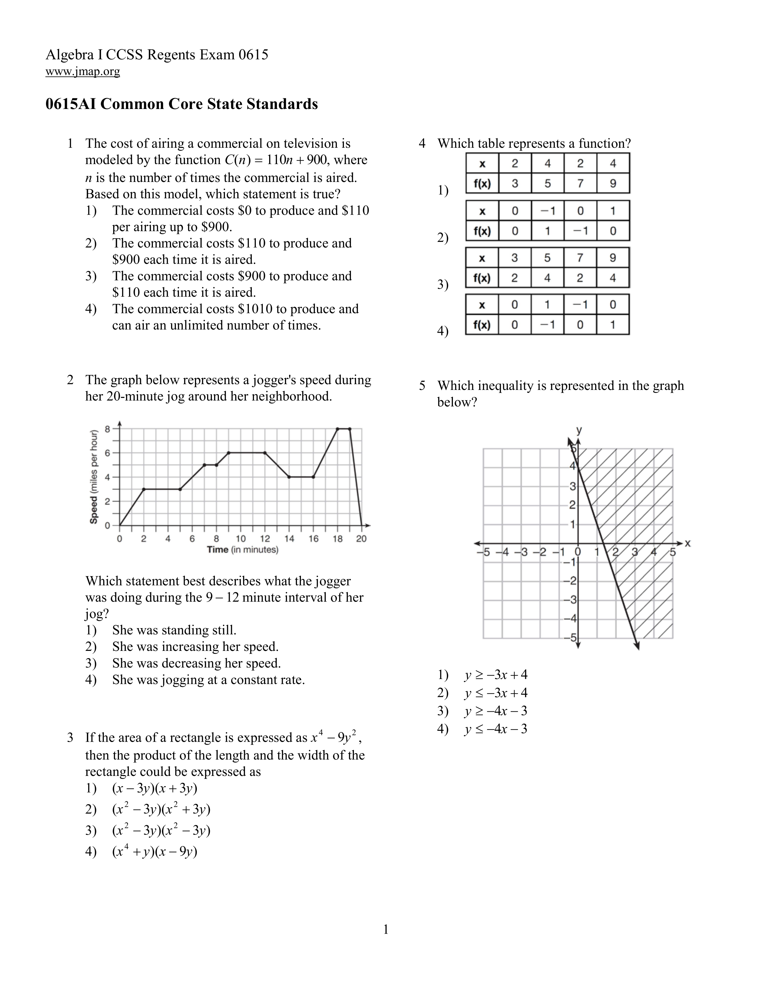 Algebra 1 Regents June 2015