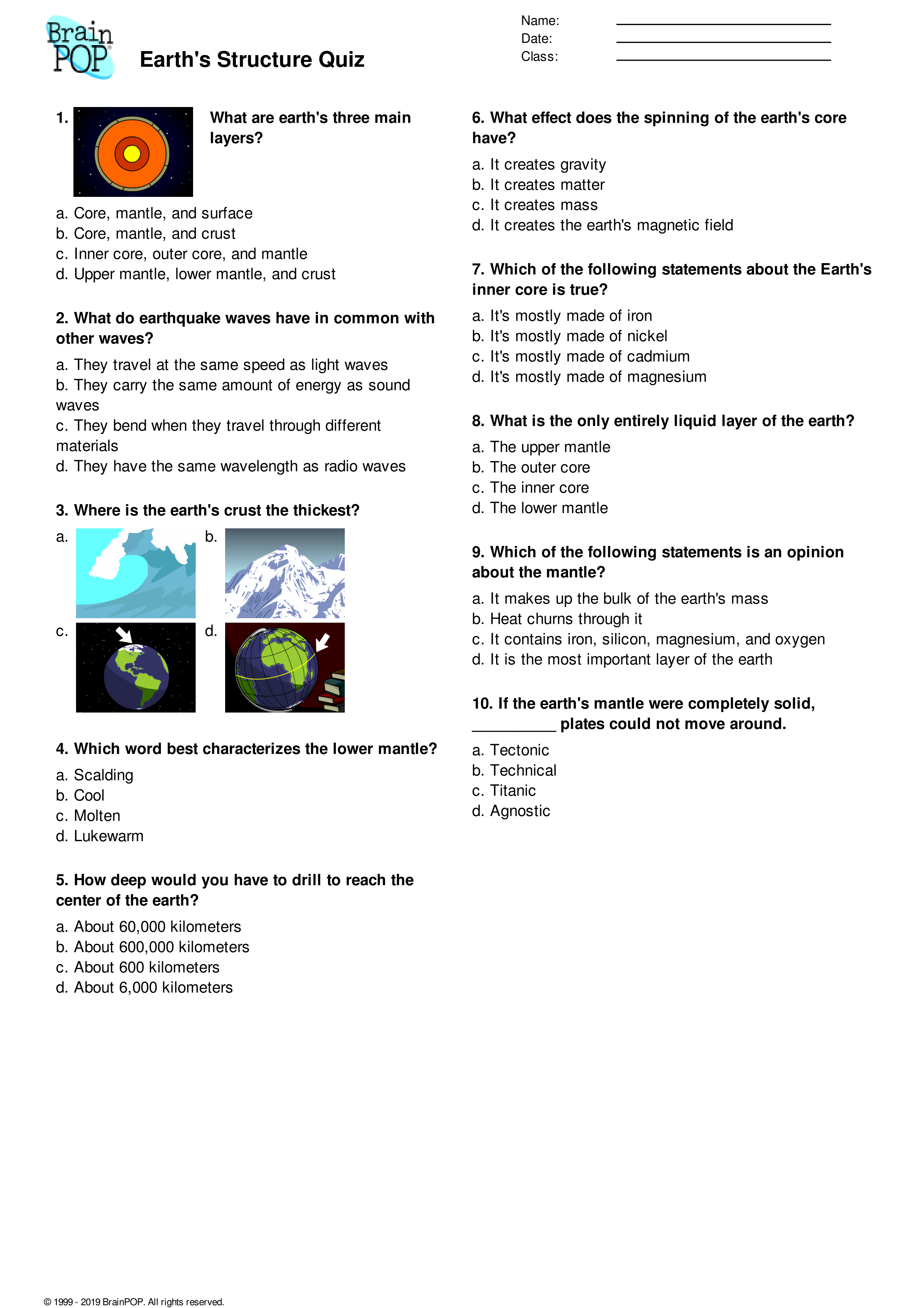 EARTH'S STRUCTURE QUIZ
