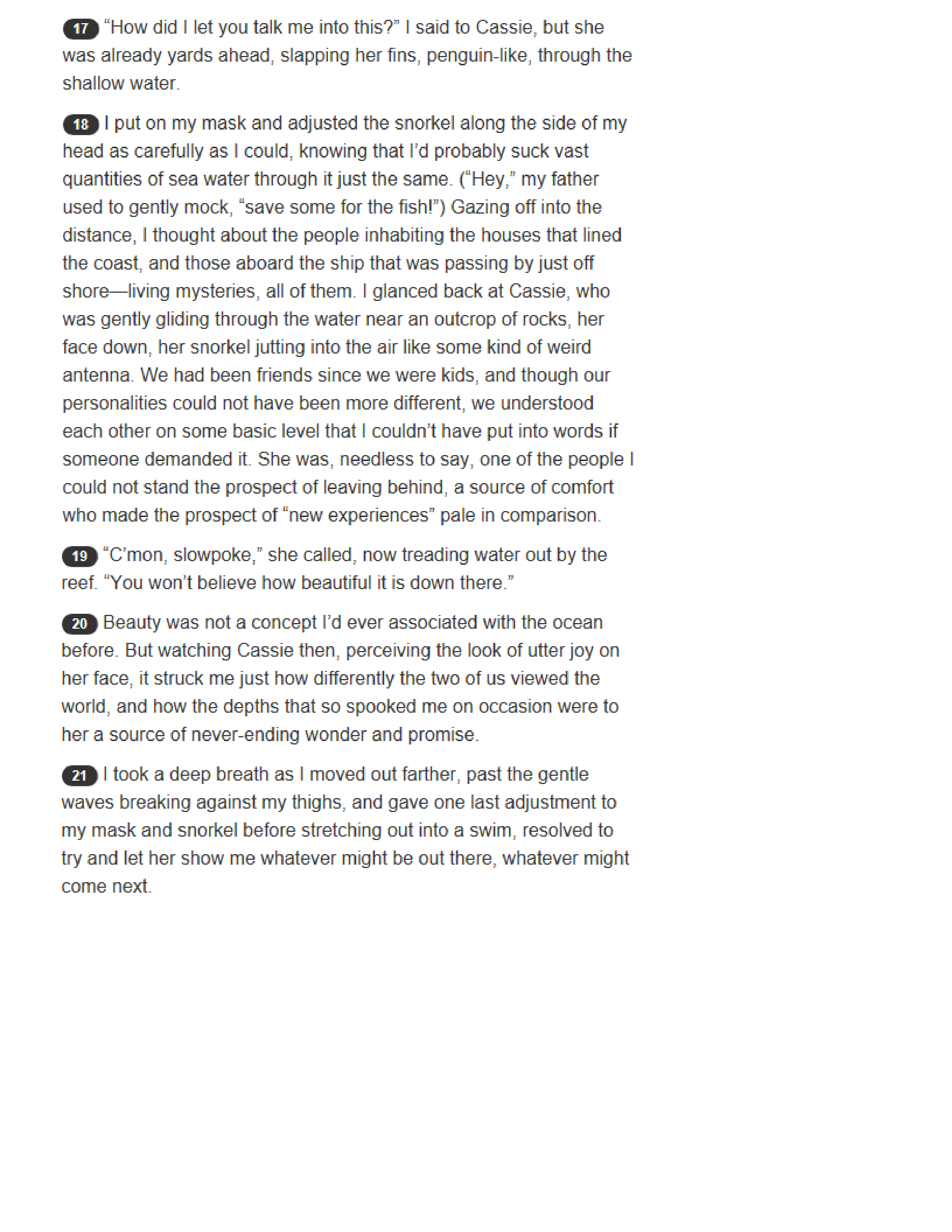 Select two ways that the interactions with other characters support the development of the narrator's character.