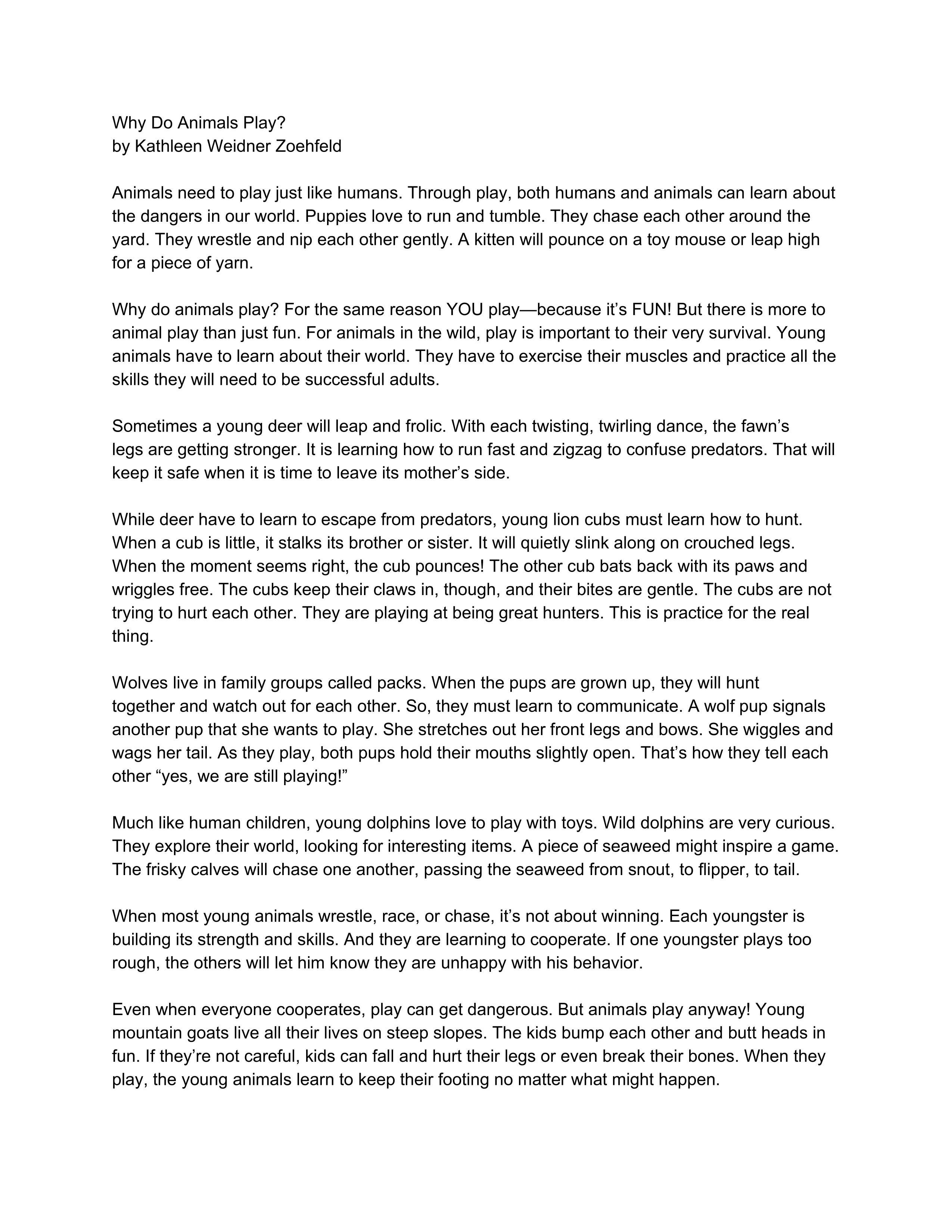 Why Do Animals Play?
