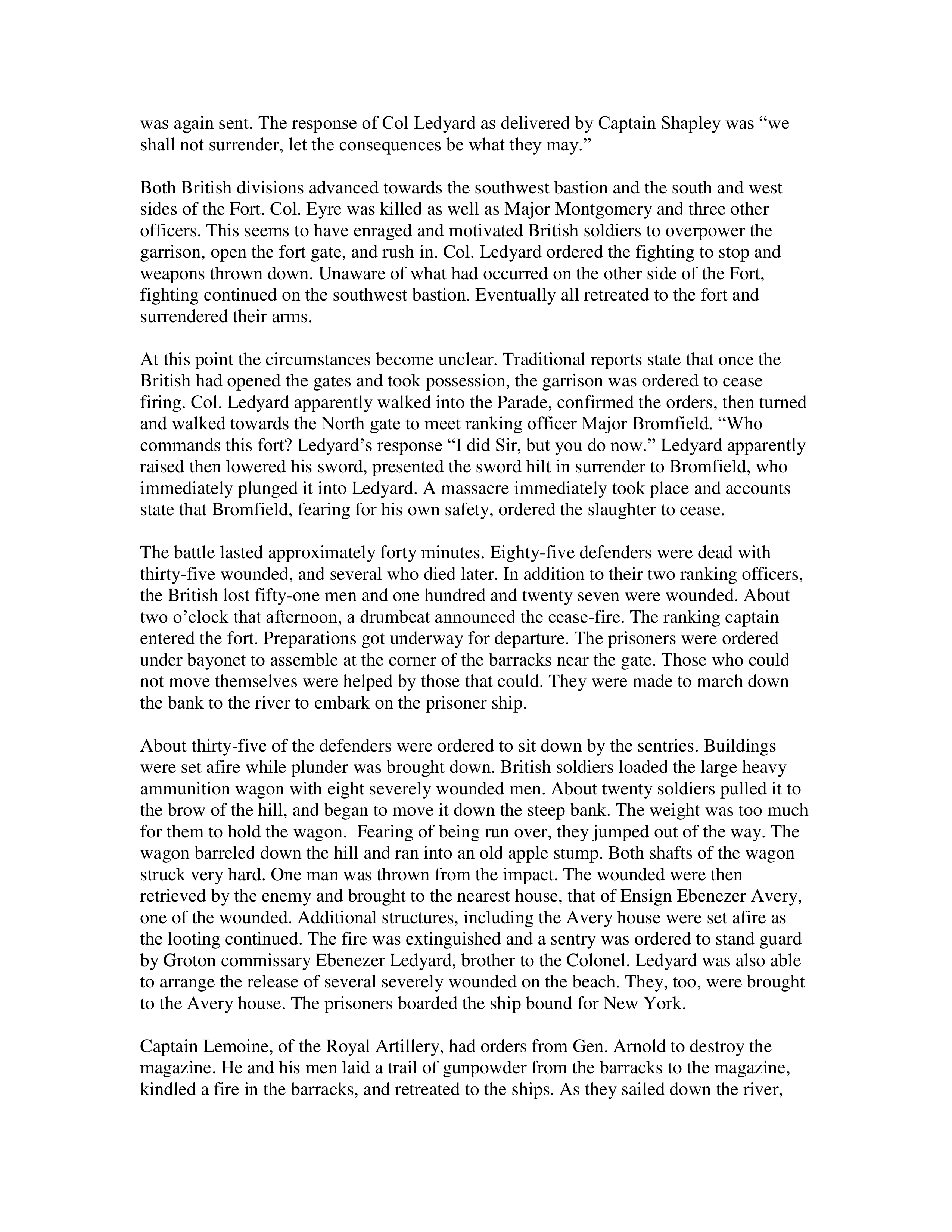 What did Col. Ledyard say in response to requests that he and the colonist surrender?