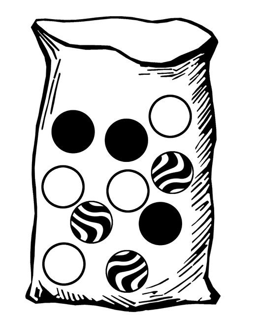 Look at the bag of marbles below. What is the probability that you will draw a black or white marble?