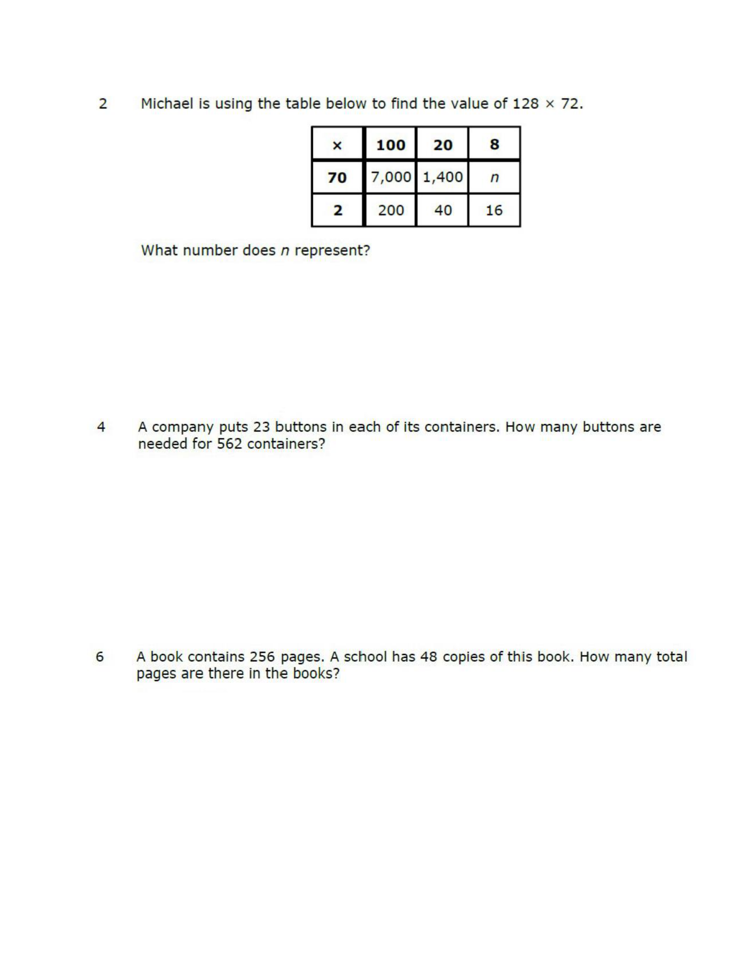 Michael is using the table below to find the value of 128 x 72. What number does n represent?