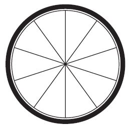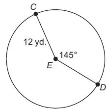 The spokes of a bicycle wheel form 10 congruent central angles. The diameter of the circle formed by the outer edge of the wheel is 18 inches.