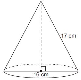 What is the volume of the cone shown below in cubic centimeters? (Don't include units in your answer.)