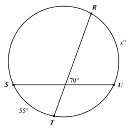 Points R, S, T, and U lie on the circle. The measure of RU is represented by x. What is the value of x?