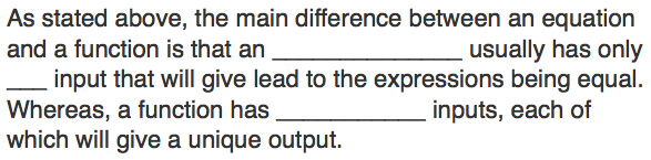 An equation and a function are two of the basic foundations of algebra, a subject matter under mathematics. Both can be quite complex in nature, however, in their basic form they may be confused as each other. The main difference between an equation and a function is the fact that an equation usually deals with a single input, whereas, a function can have numerous inputs.