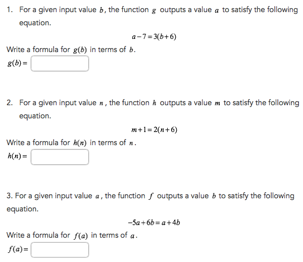 For a given input value b, the function g outputs a value a to satisfy the following equation.