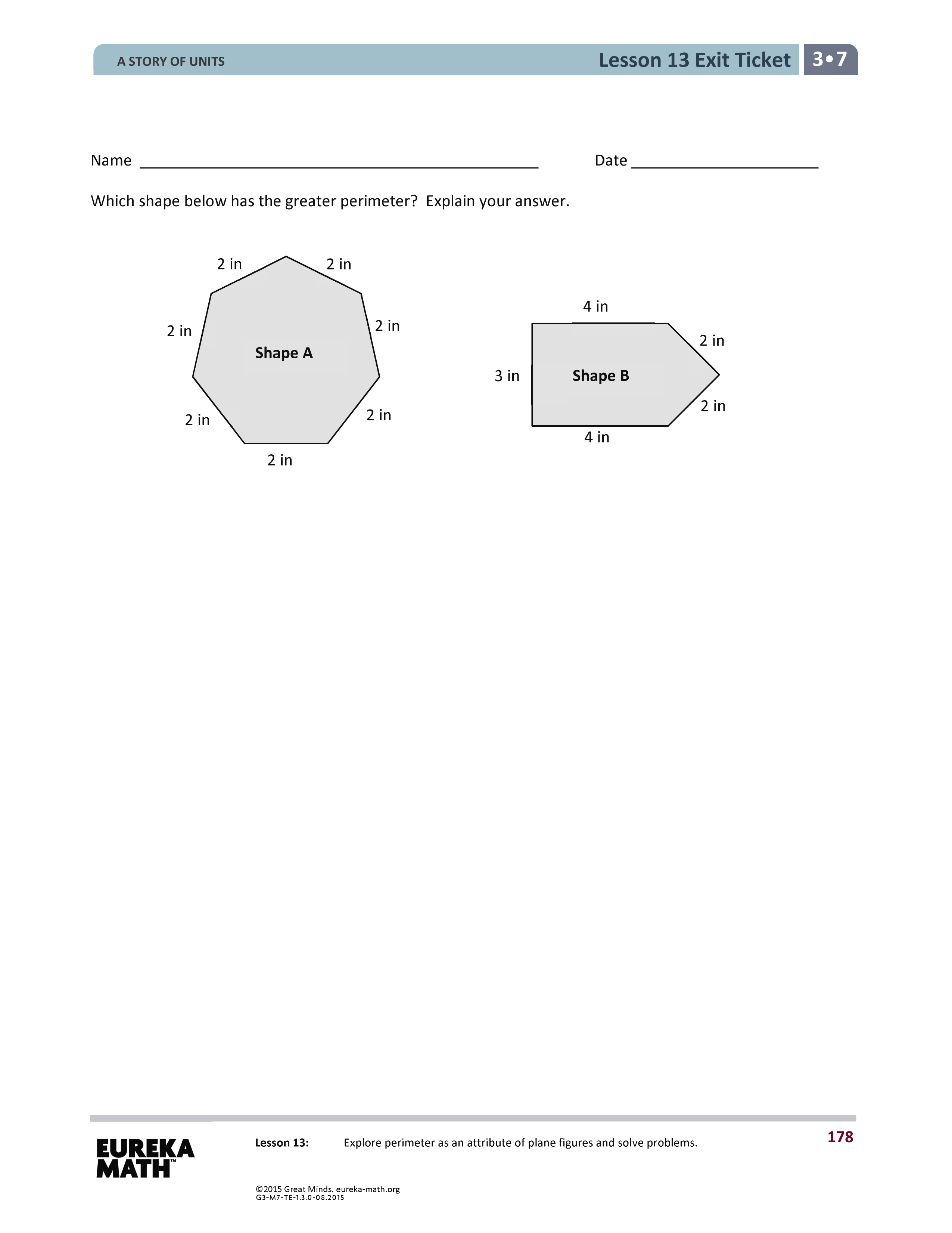Which shape has the greater permieter? Explain your answer.