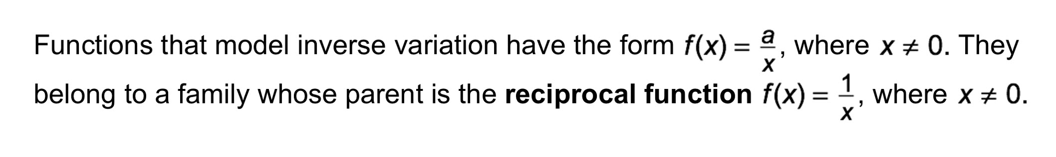 Algebra 2 8-2 Guided Practice: The Reciprocal Function Family