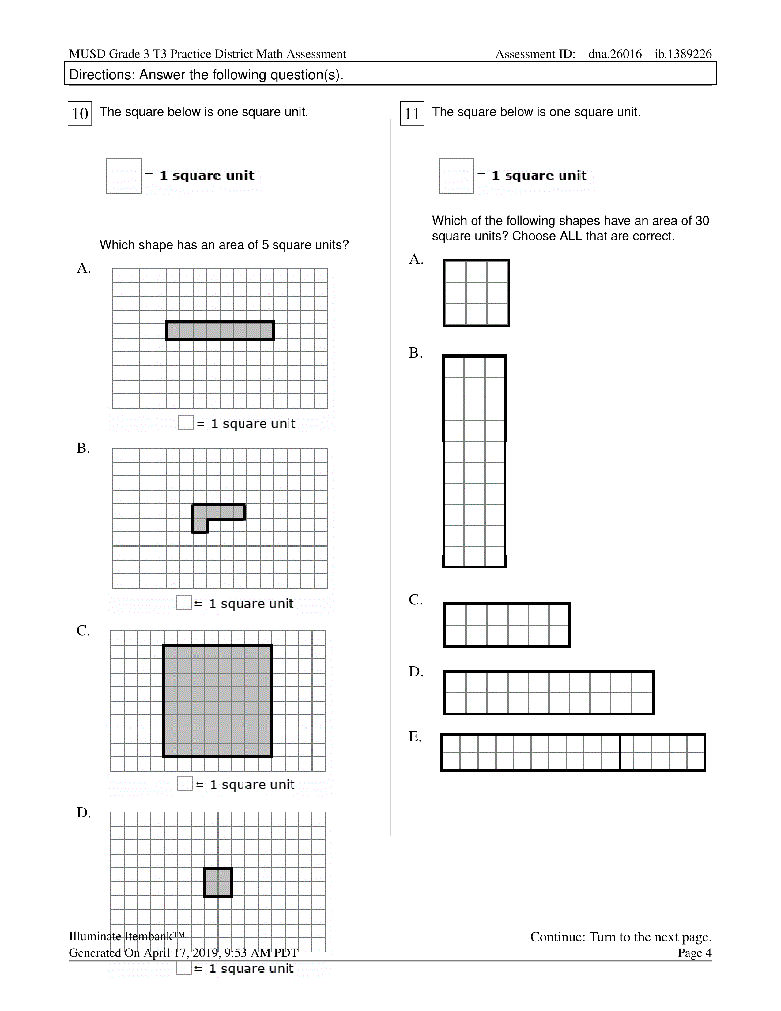 Which of the following shapes have an area of 30 square units? Choose ALL that are correct.