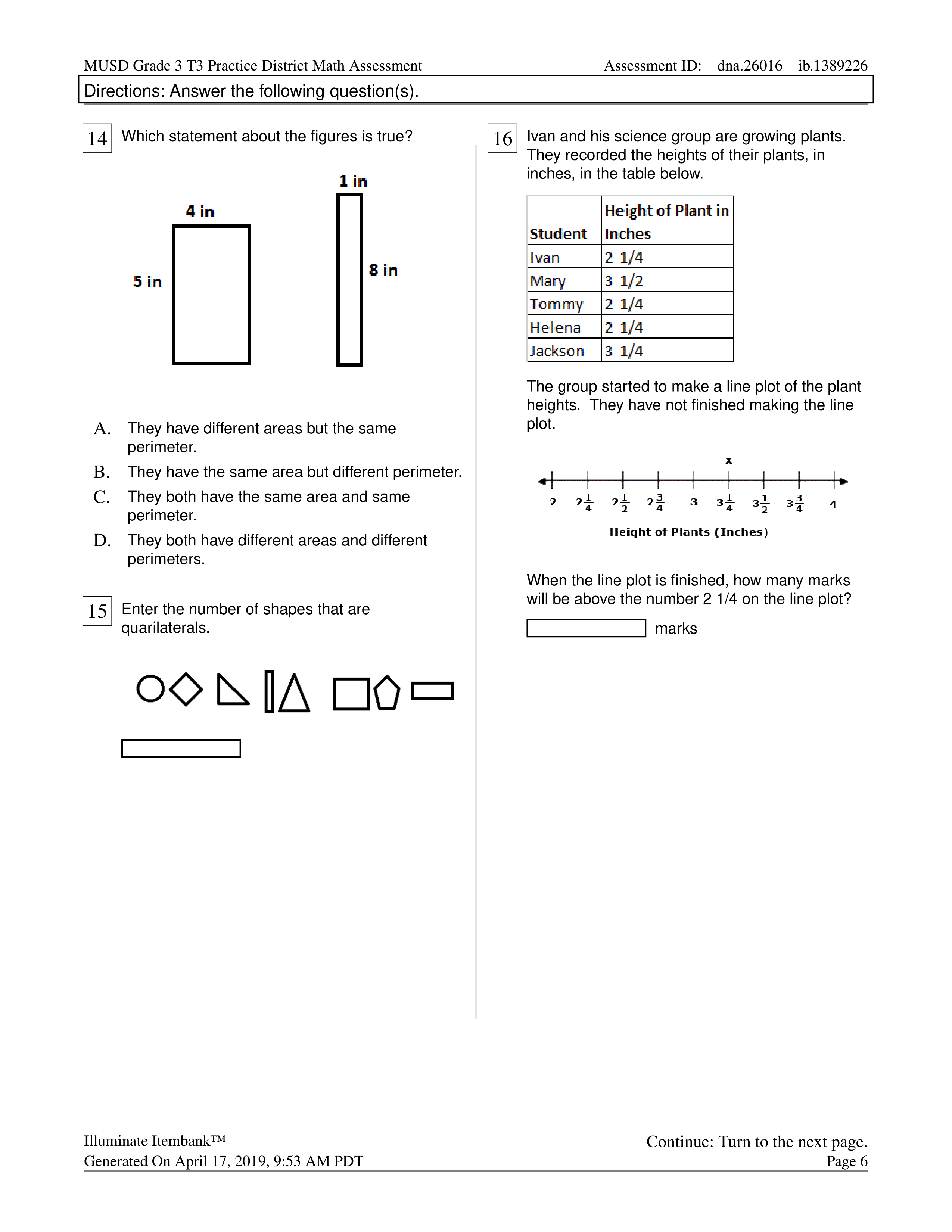 When the line plot is finished, how many marks will be above the number 2 1/4 on the line plot?