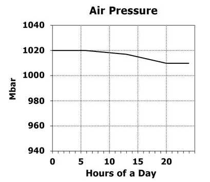 The air pressure was measured each hour for one day. What is the best prediction for the kind of weather that happened during that day?