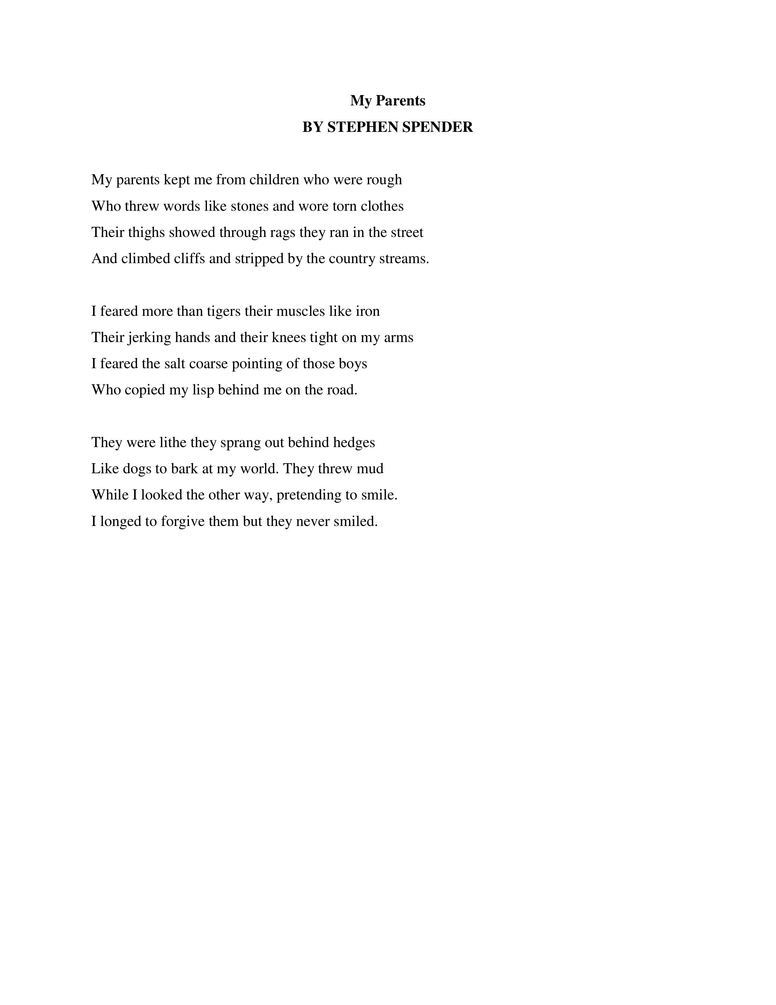 The poet's parents warned him not to mix with these "rough boys" but he envied certain aspects of their lives although he was also afraid of their rough, bullying ways.