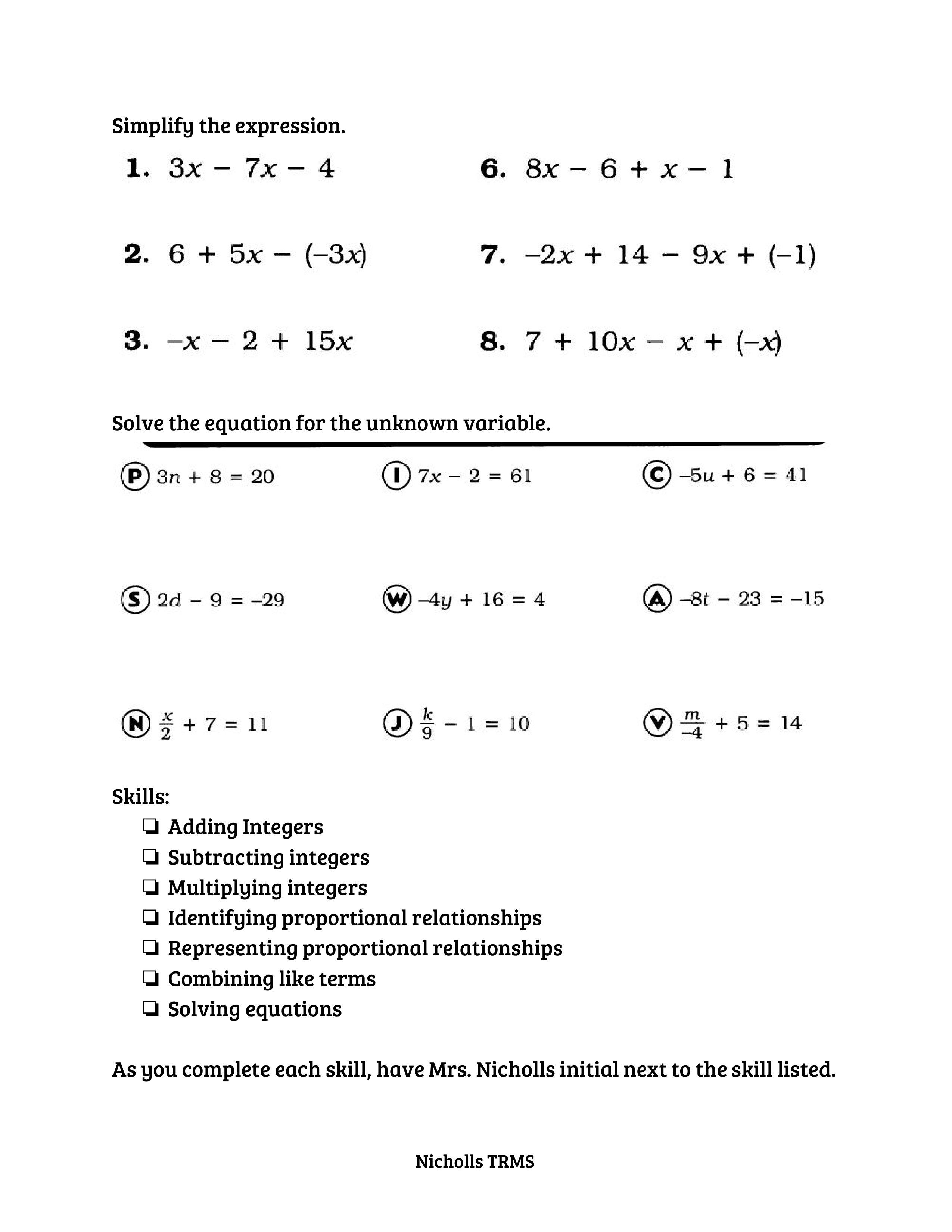 Math 7 Semester 2 Final Review