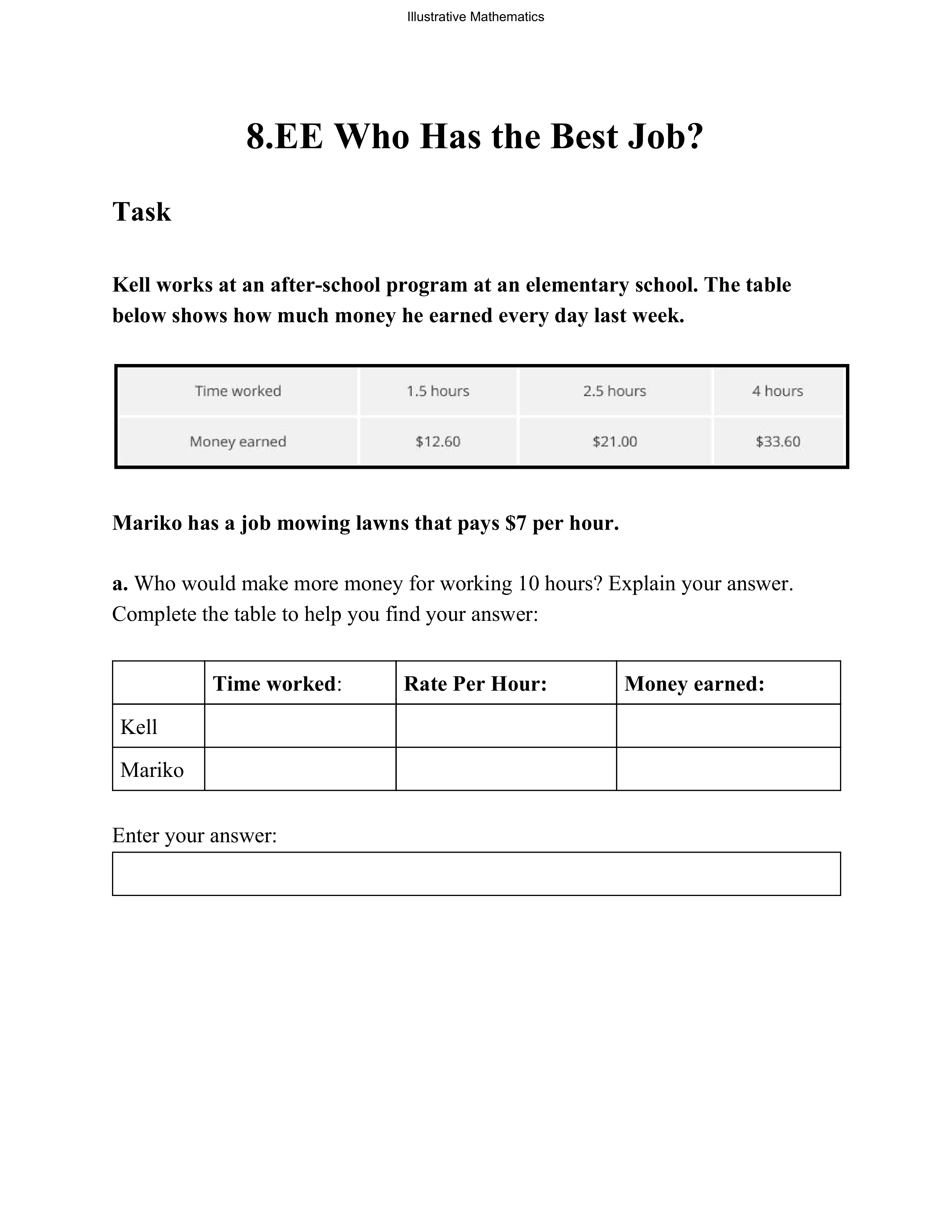 Enter the rate per hour that Kell was paid: