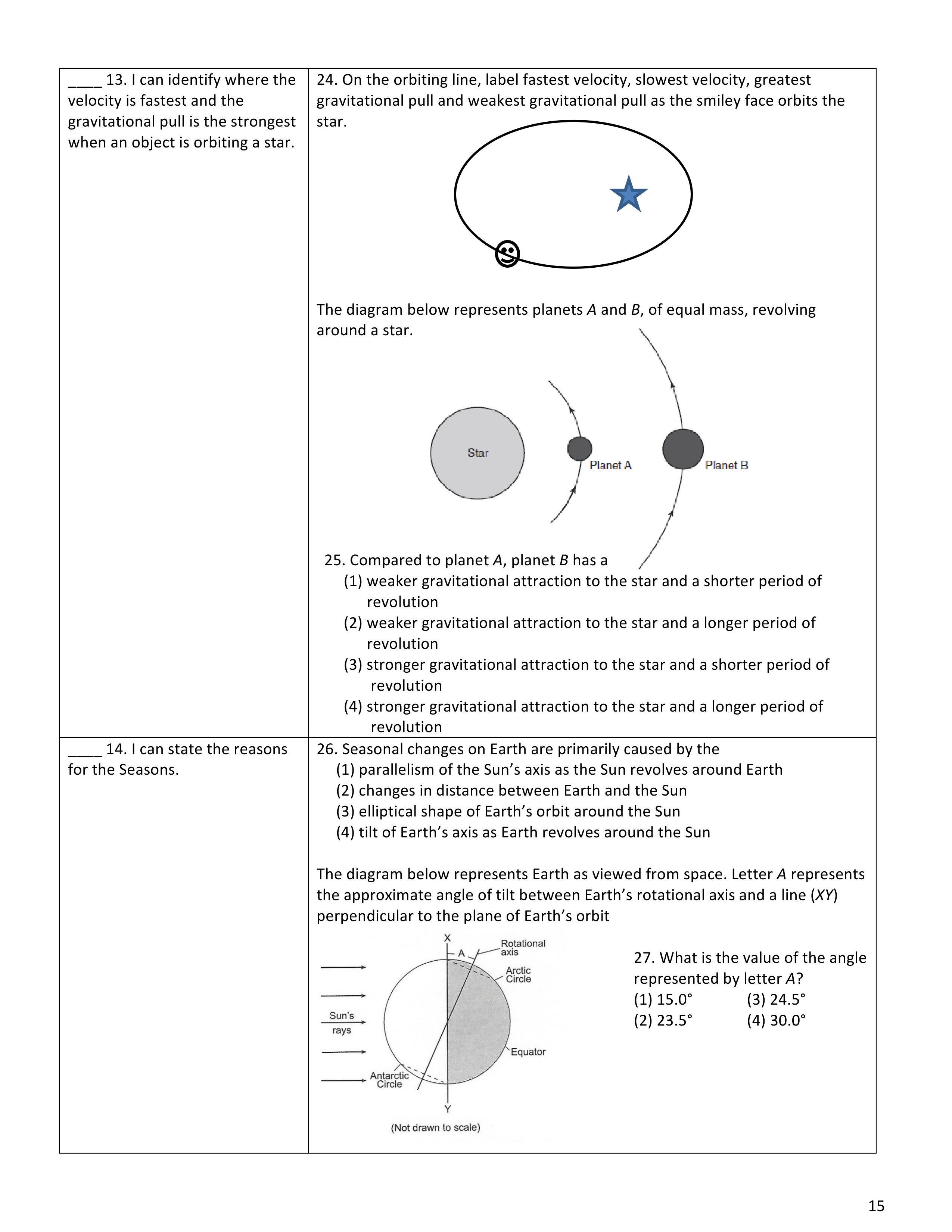 1. The tilt of Earth at an angle of __________