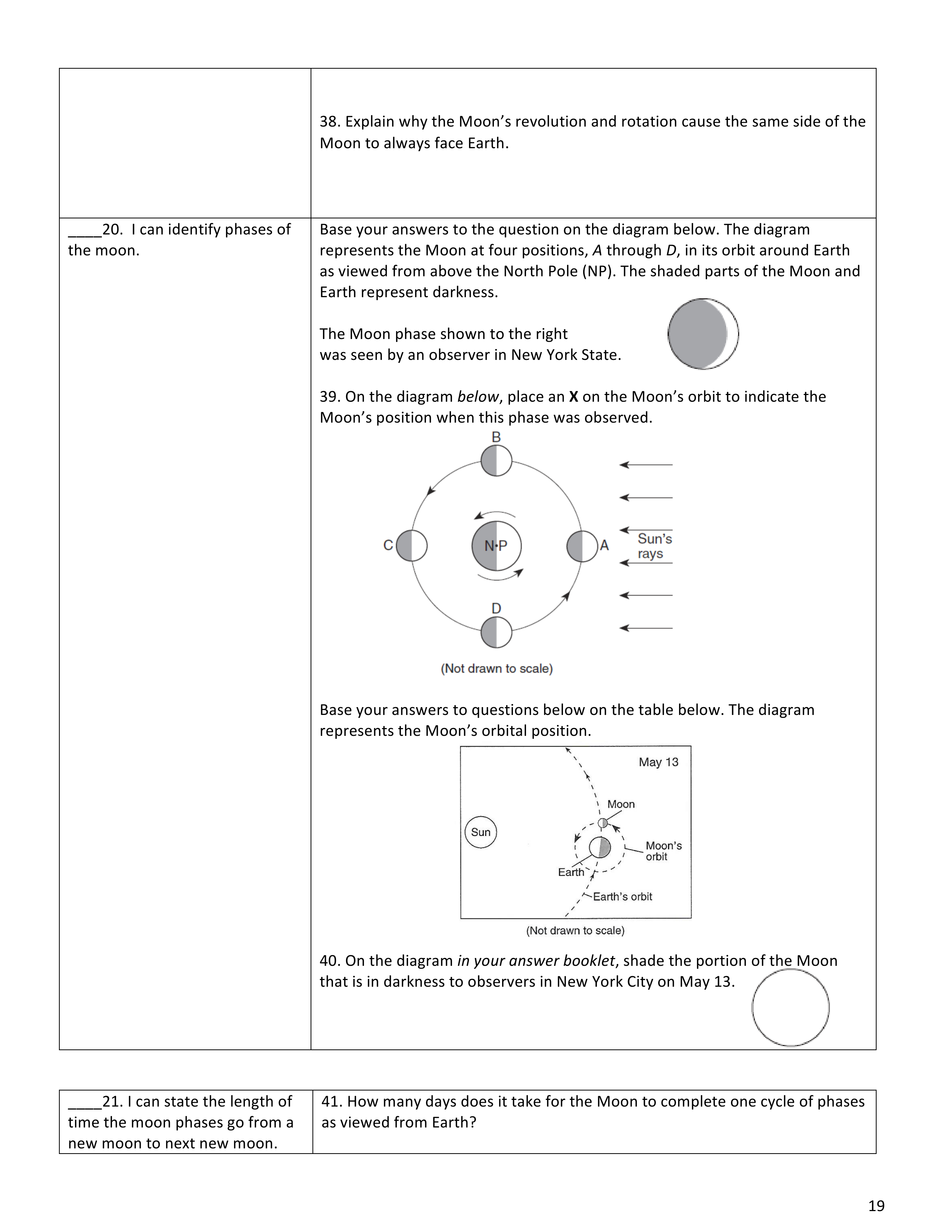 The Moon is Earth's only natural satellite. It takes a total of _________ days to revolve around Earth. Not only is the Moon revolving, but it is also ____________ at the same rate, which is why we observe only one side of the Moon at all times.
