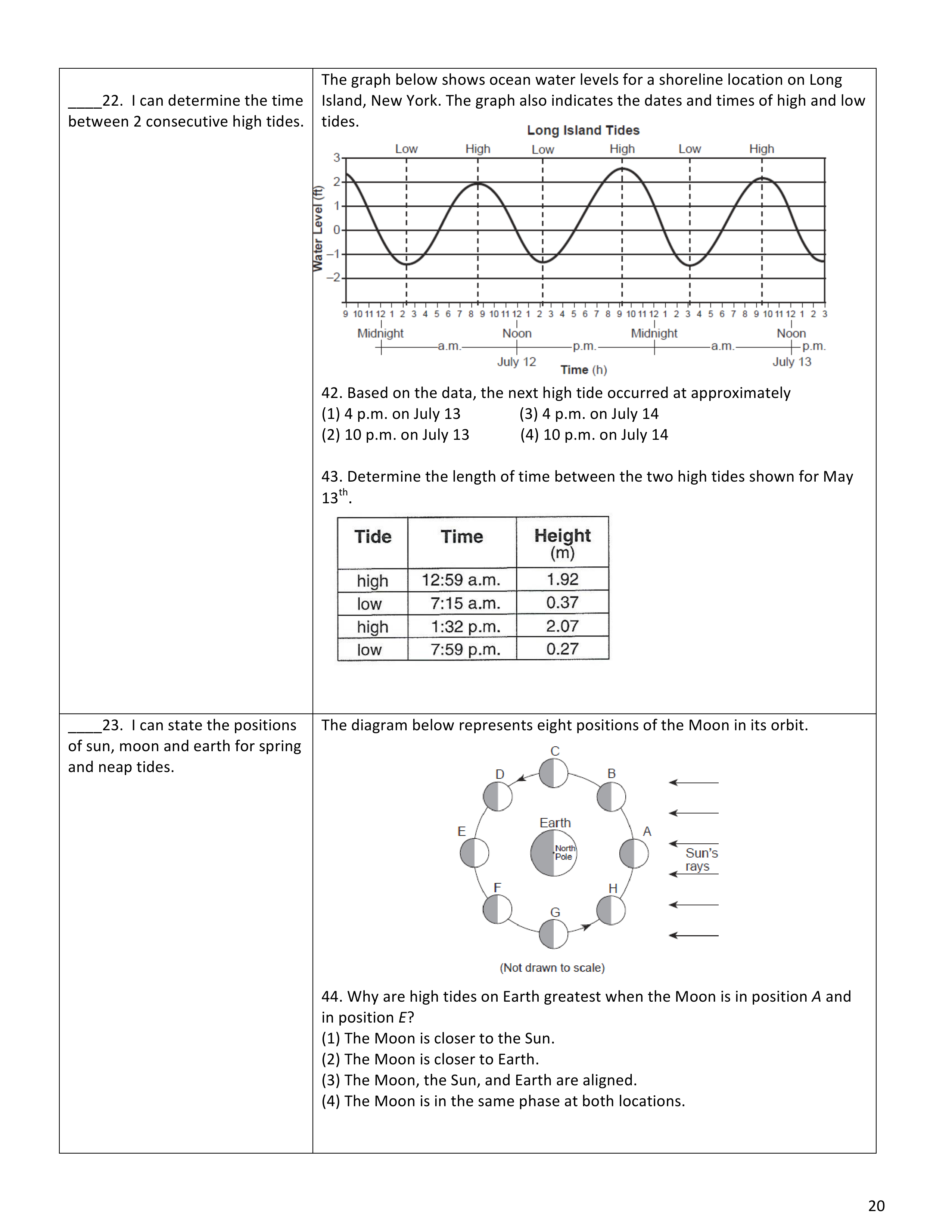 - Neap Tides: Neap tides occur during the ____________________________ moon phases. At these times, the Sun and Moon are at _________________ to each other, and their pull on Earth is not as strong. This makes the high tides not so high and the low tides not so low. It's like a _________ tide!