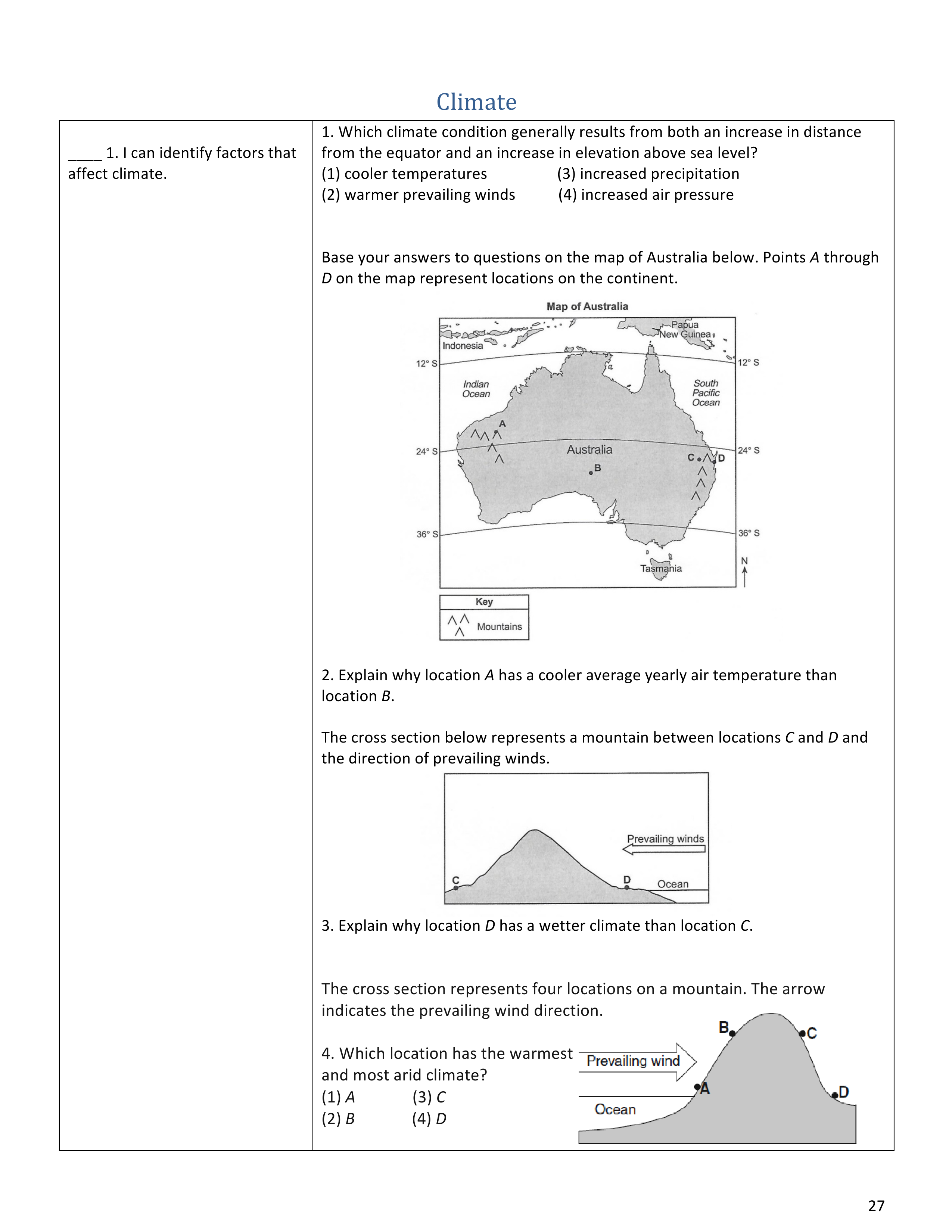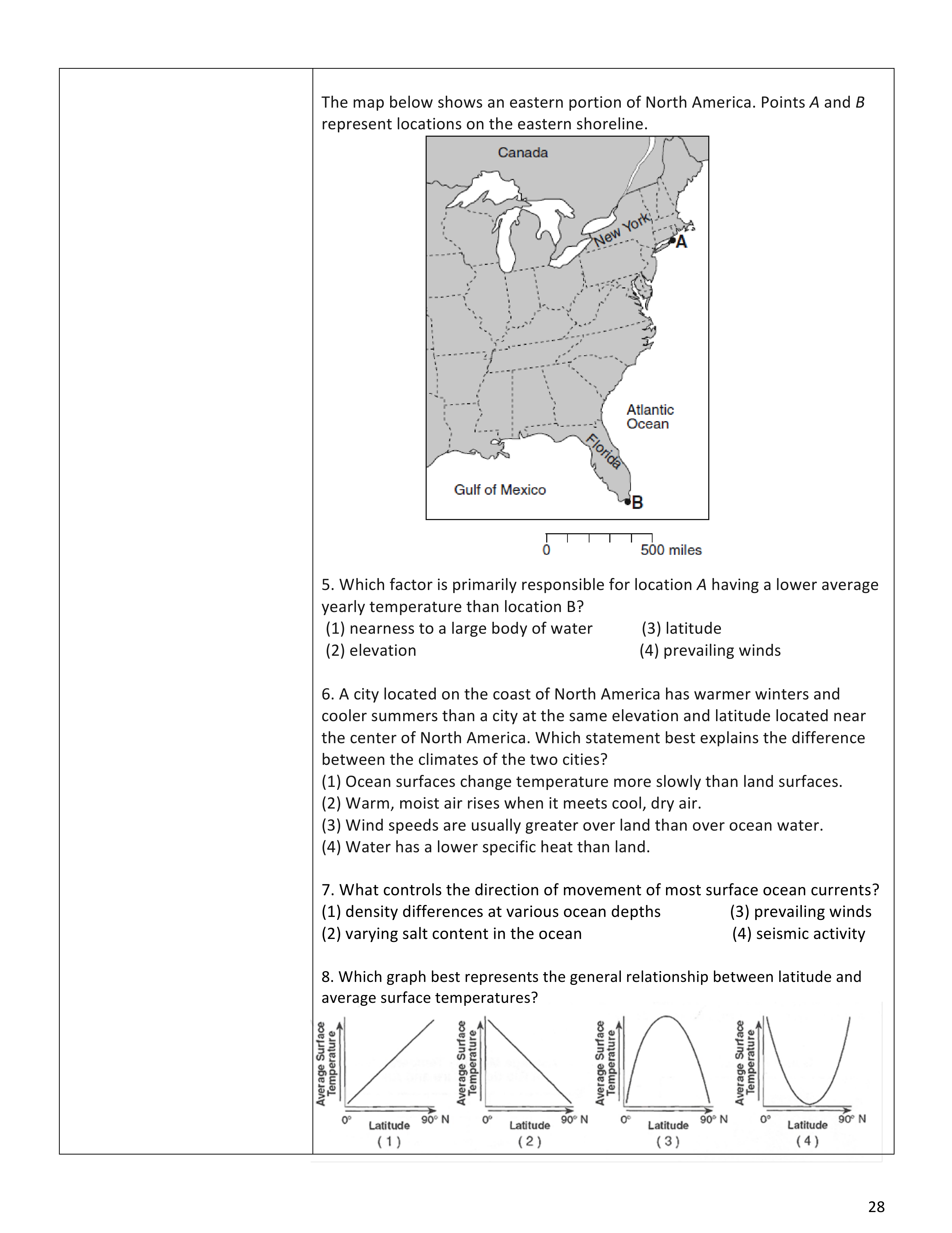 - Topography: The physical features of the land, such as mountains, valleys, and bodies of water, can influence climate. Mountains can act as barriers to prevailing winds, causing differences in temperature and precipitation patterns on either side. Large bodies of water, such as oceans and lakes, can moderate temperatures by absorbing and releasing heat energy, leading to milder climates in coastal areas. Typically, coastal cities will be ___________ in the winter and ___________ in the summer.