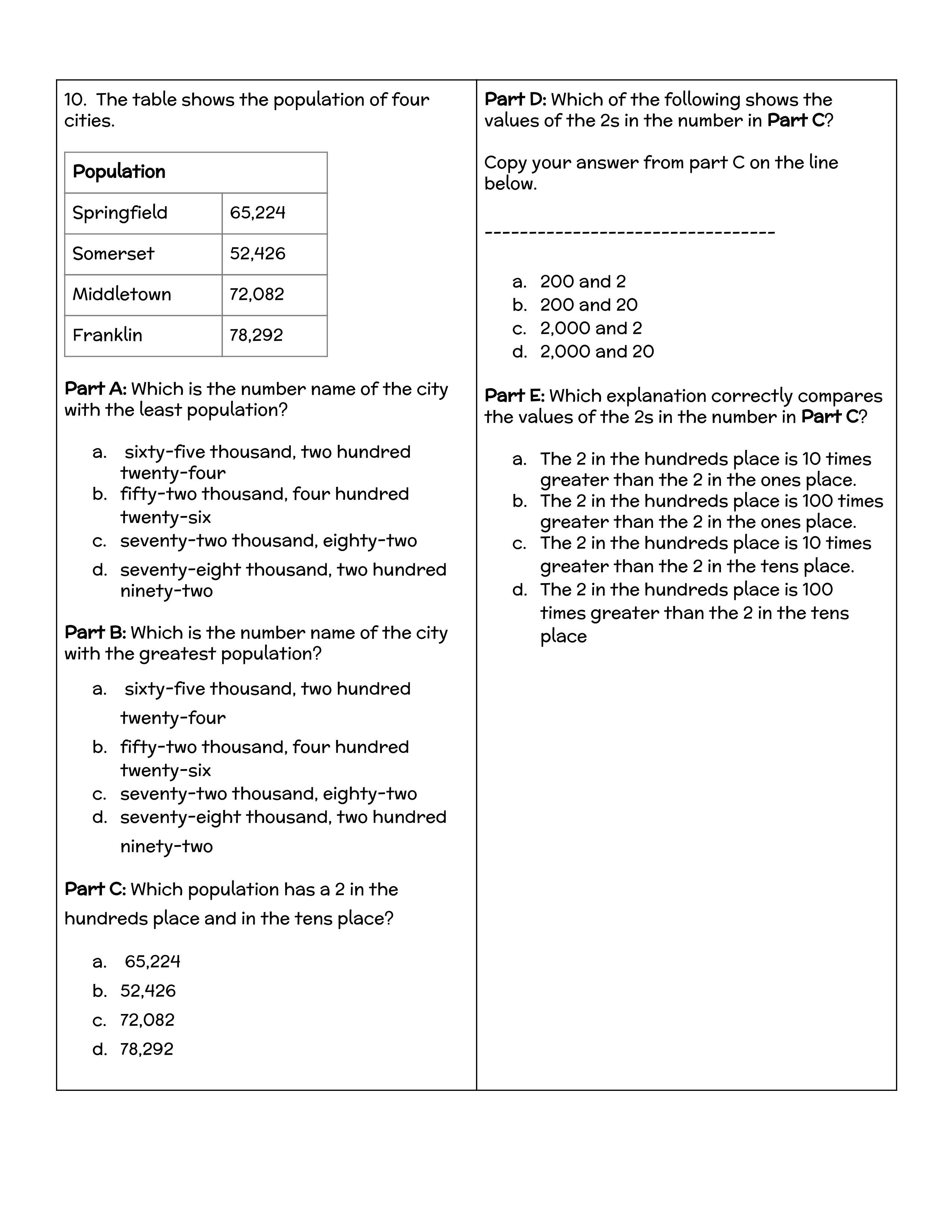 Part C: Which population has a 2 in the hundreds place and in the tens place?