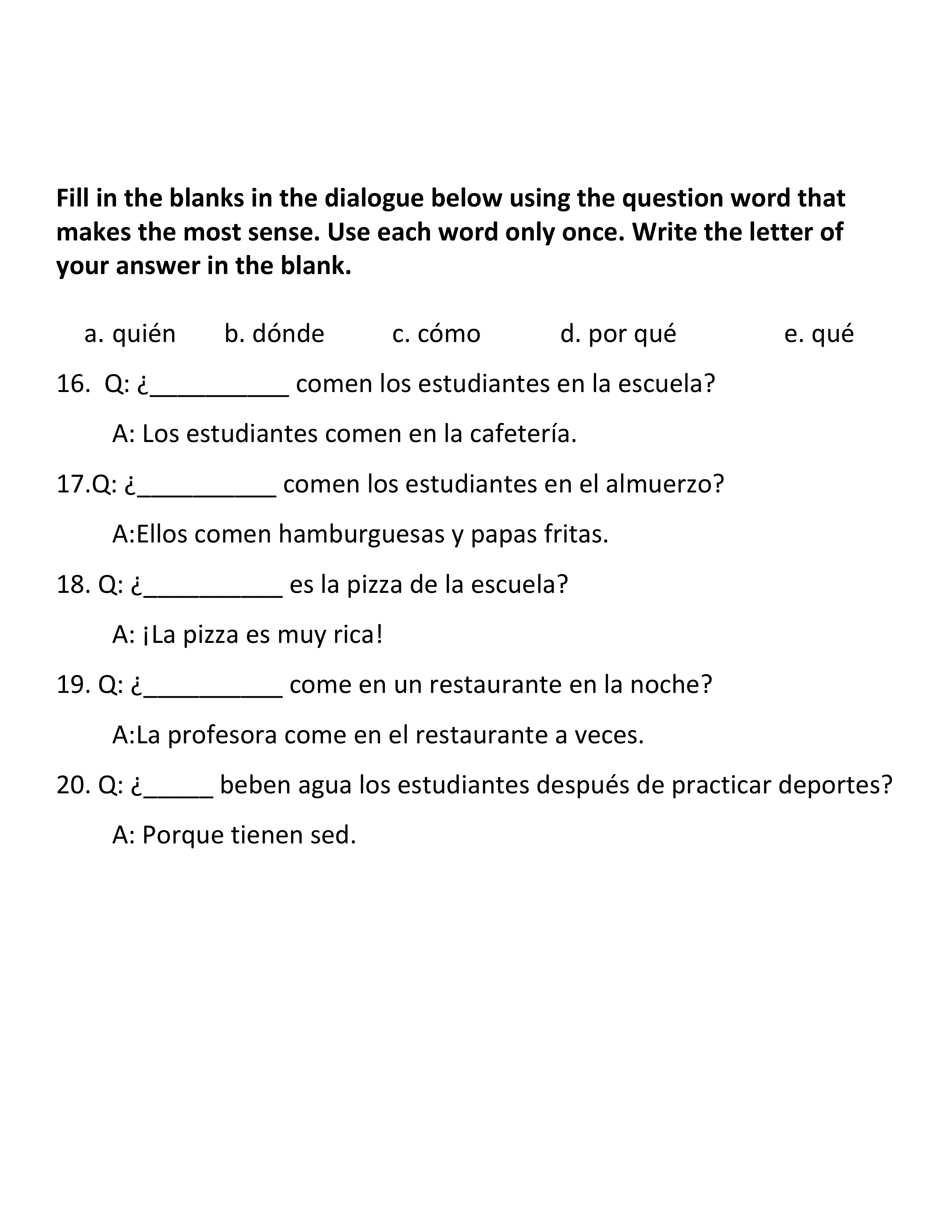 Choose the question word that makes the most sense in each question, given the answer shown below each question. You'll use each word only once.