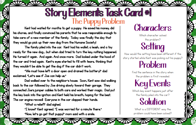List at least FIVE things that would b seen in the setting where the story occurs.