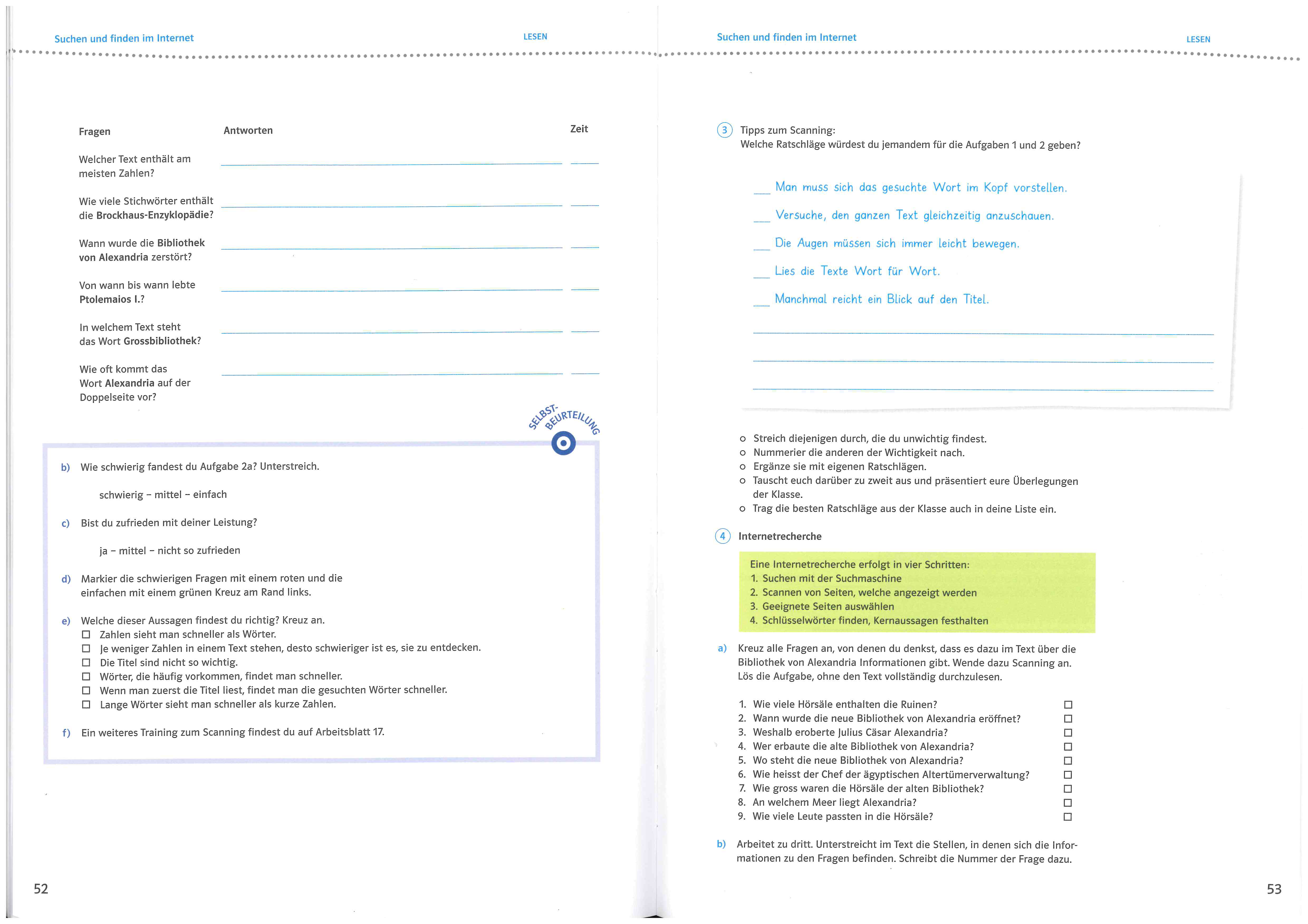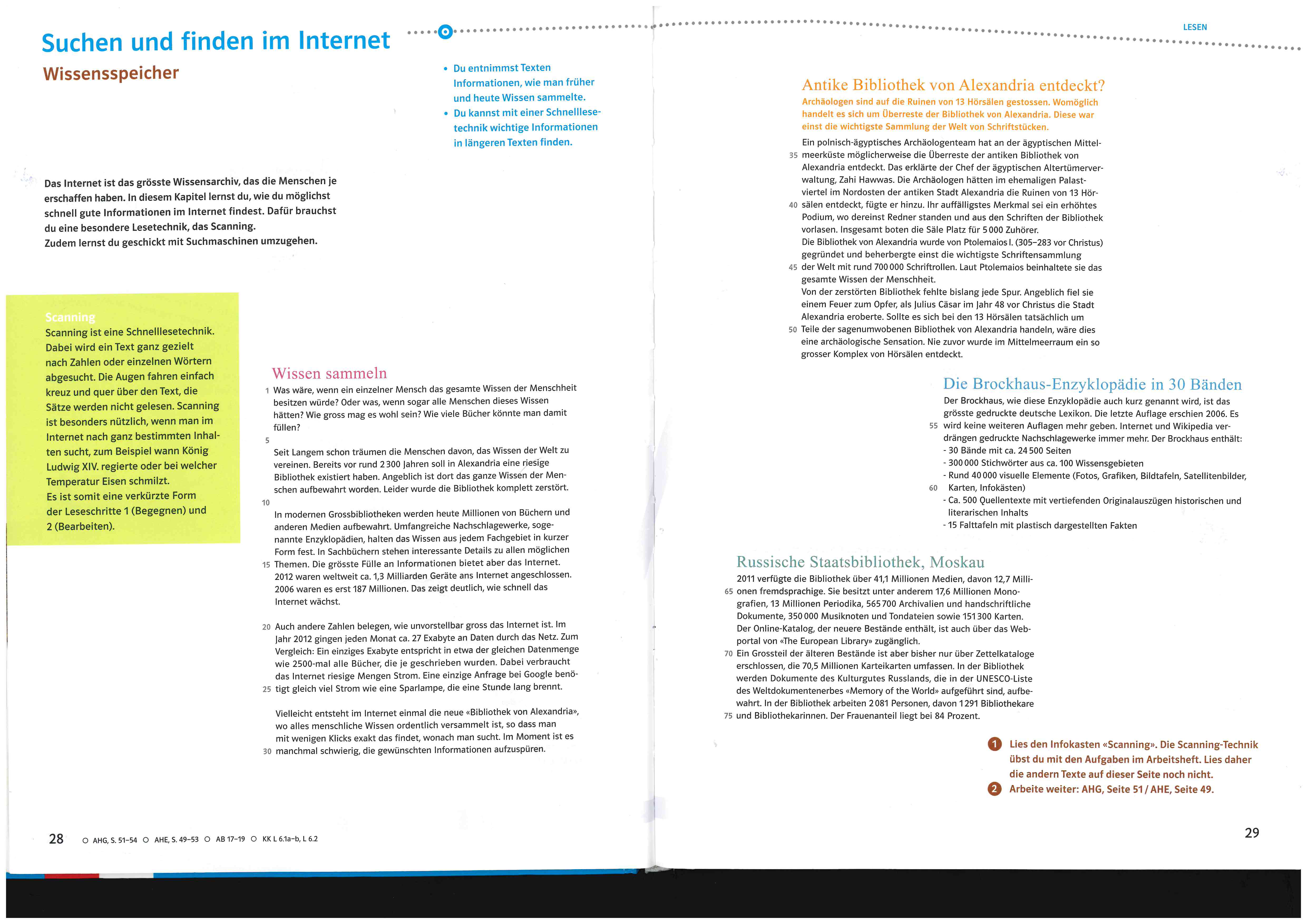 Kreuze alle Fragen an, von denen du denkst, dass es dazu im Text über die Bibliothek von Alexandria Informationen gibt. Wende dazu Scanning an. Lös die Aufgabe, ohne den Text vollständig durchzulesen.