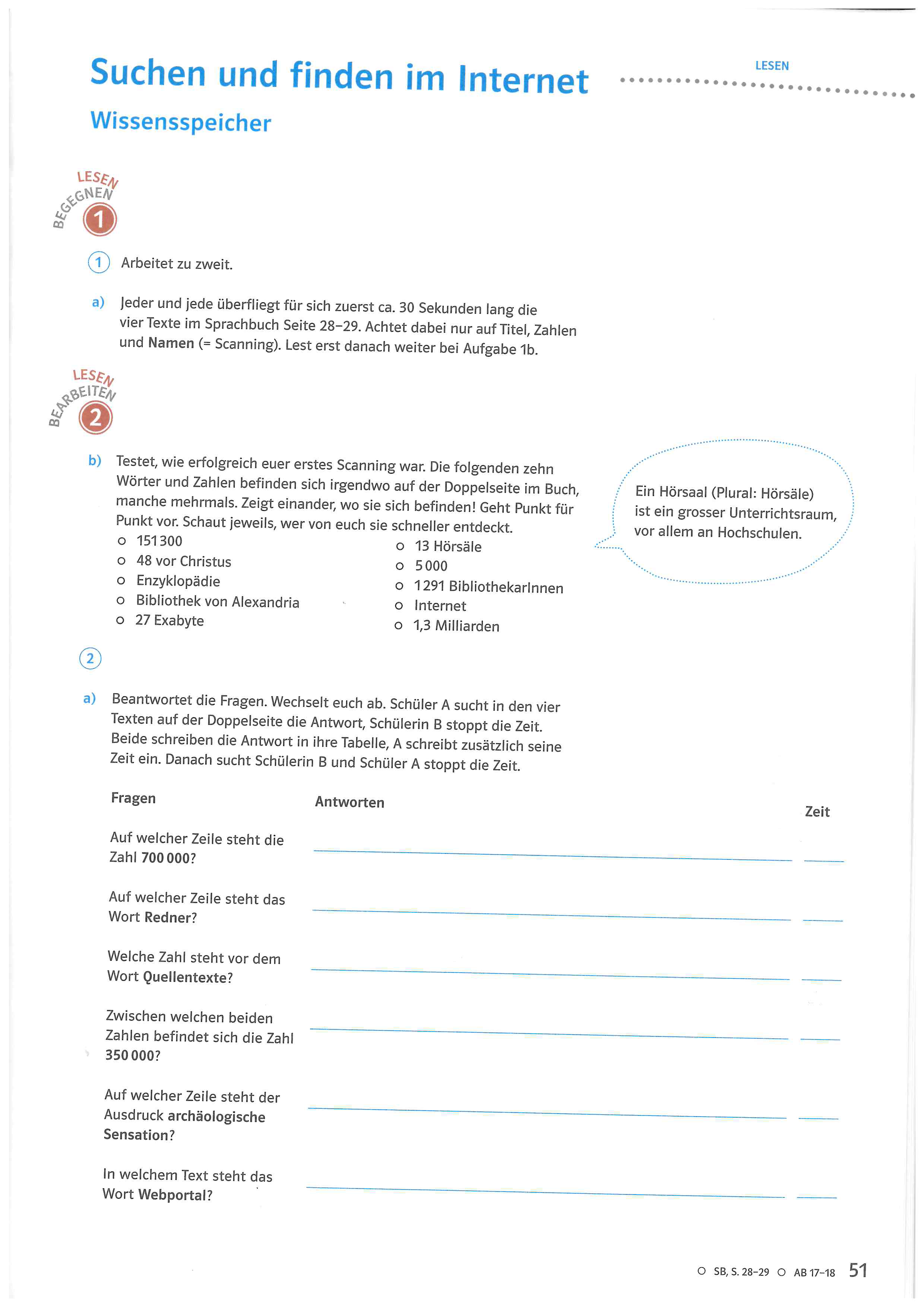 Notiere hier die Fragennummer und daneben die Zeilenzahl(en), auf der die Information im Text vorkommt.