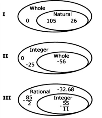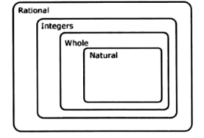 Natural numbers, Whole numbers, Integers, and Rational numbers