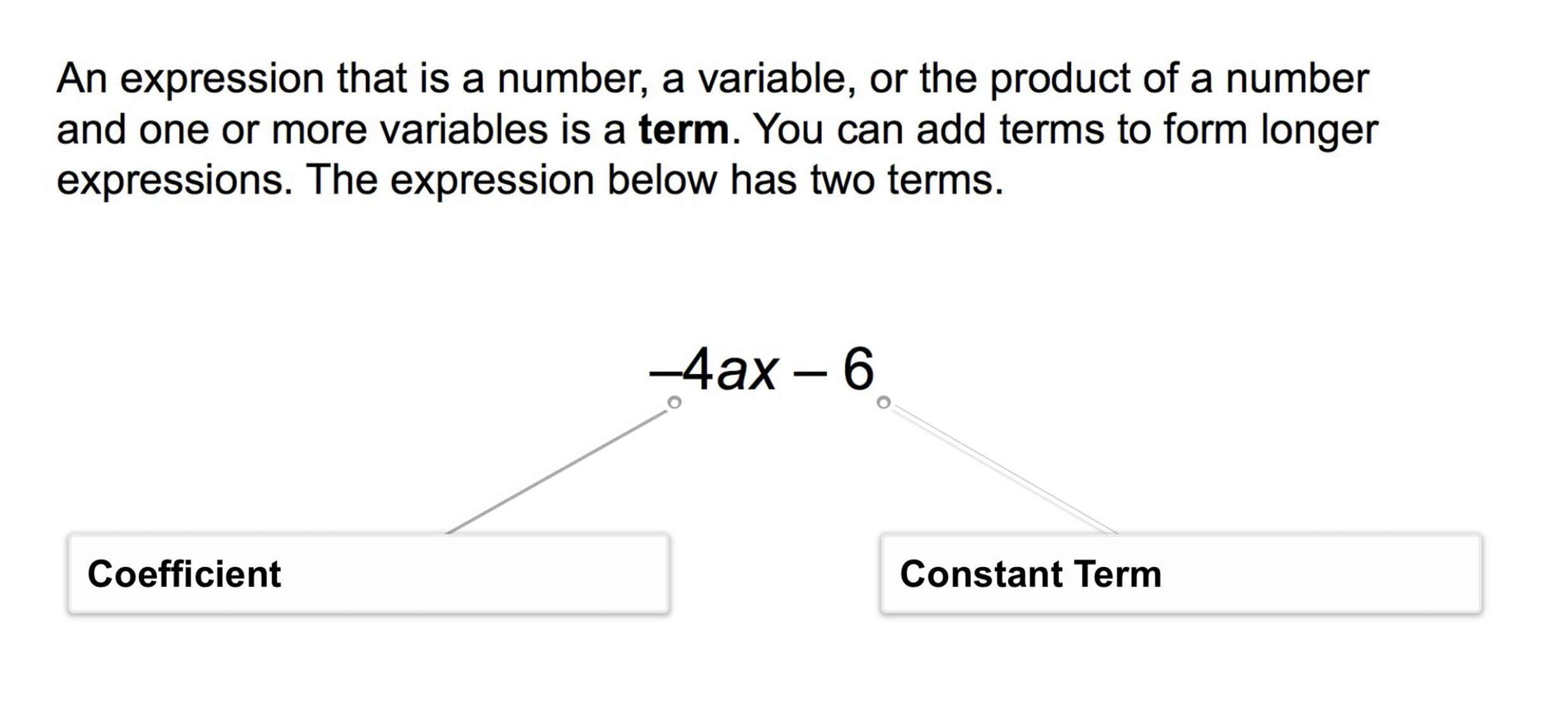 Take Note: Provide an example of an algebraic expression that has two terms: