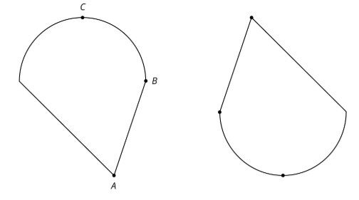 These two figures are congruent. Label the points A', B' and C' that correspond to A, B, and C in the figure on the right.