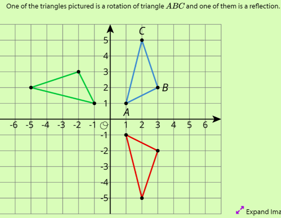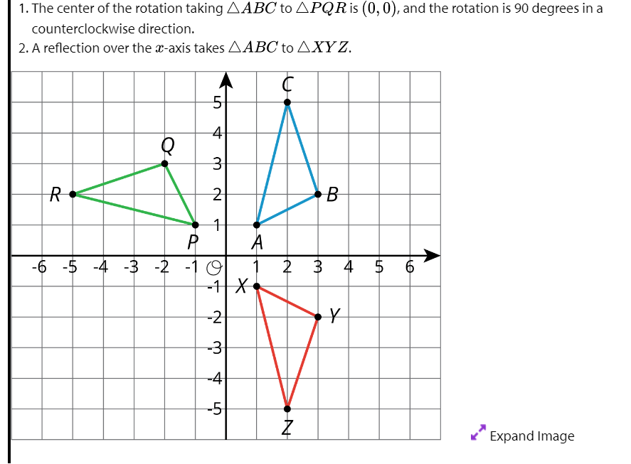 Identify the center of rotation, and label the rotated image PQR.Identify the line of reflection, and label the reflected image XYZ.