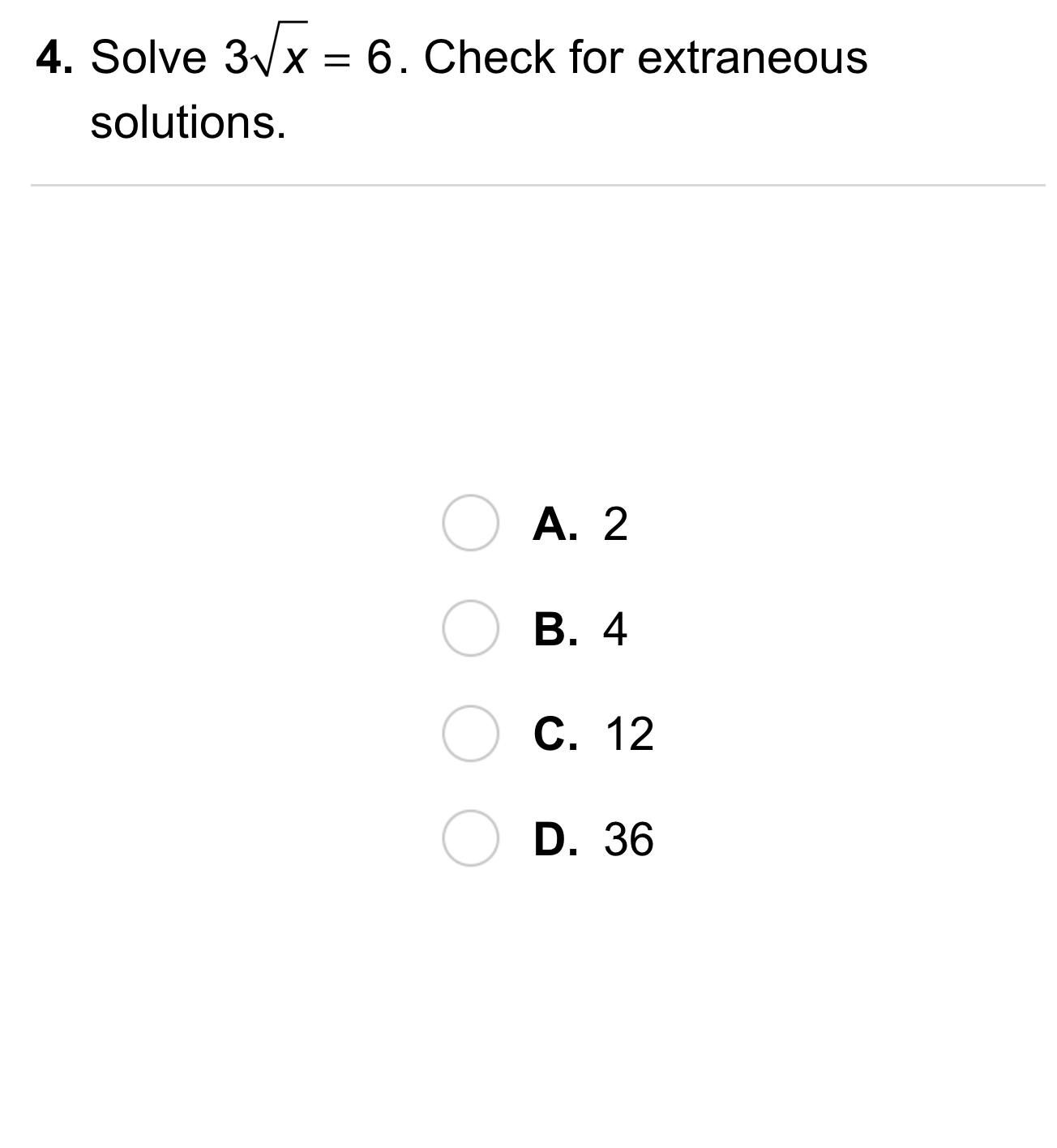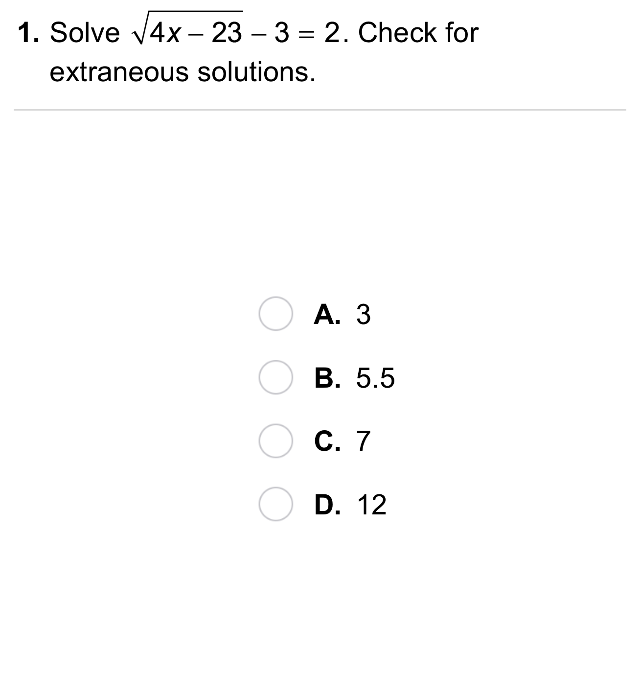 Vocabulary: Which value, 12 or 3, is an extraneous solution of the equation?