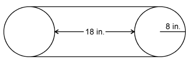 Using the same image as Question 18, if the same belt were put on two wheels with a 12 inch diameter, approximately how far apart would the wheels have to be? Round to the nearest tenth and do not include units.