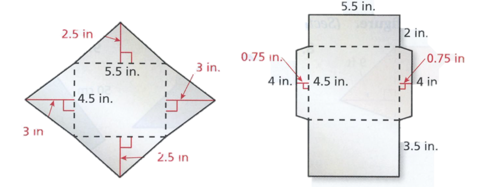 Using the same picture above, you make 500 envelopes using the design with the greater area. Using the same amount of paper, how many more envelopes can you make with the other design?