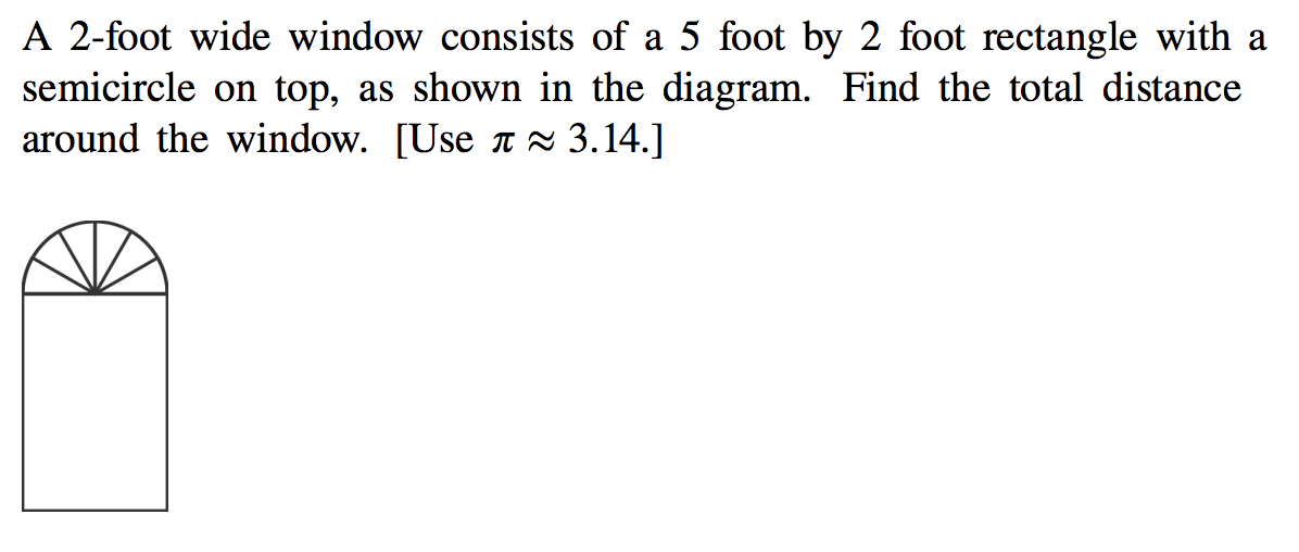 Find the total distance around the window above in feet. Do not include units in your answer and round to the nearest hundredth if needed.