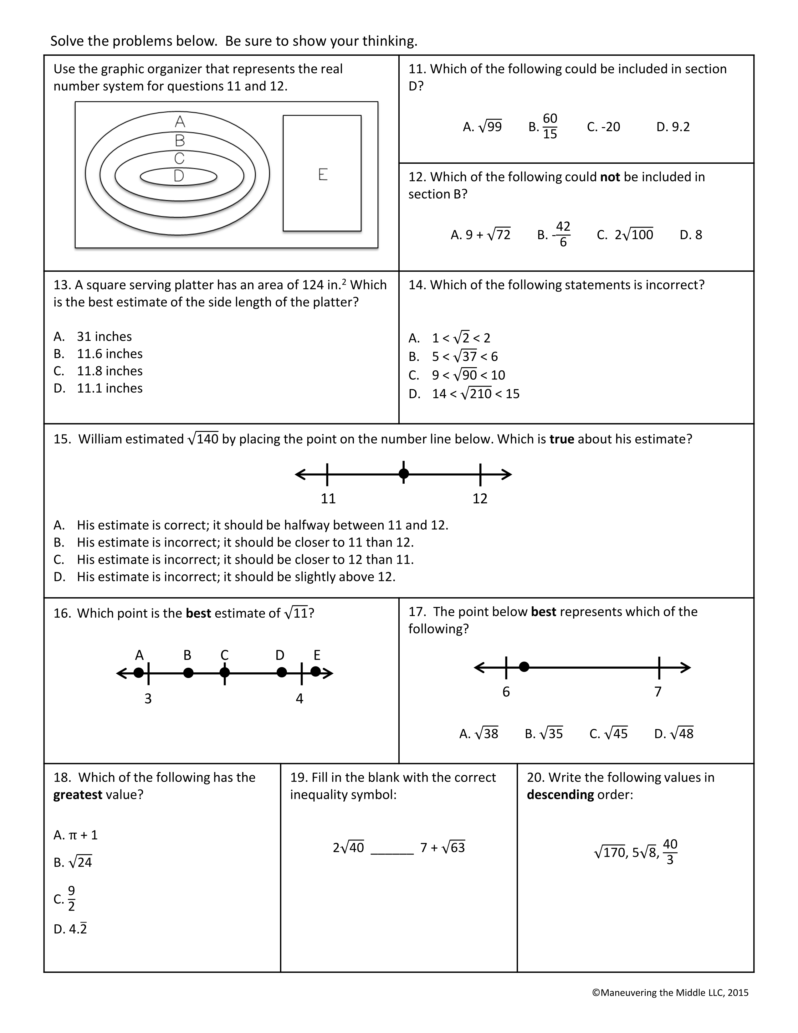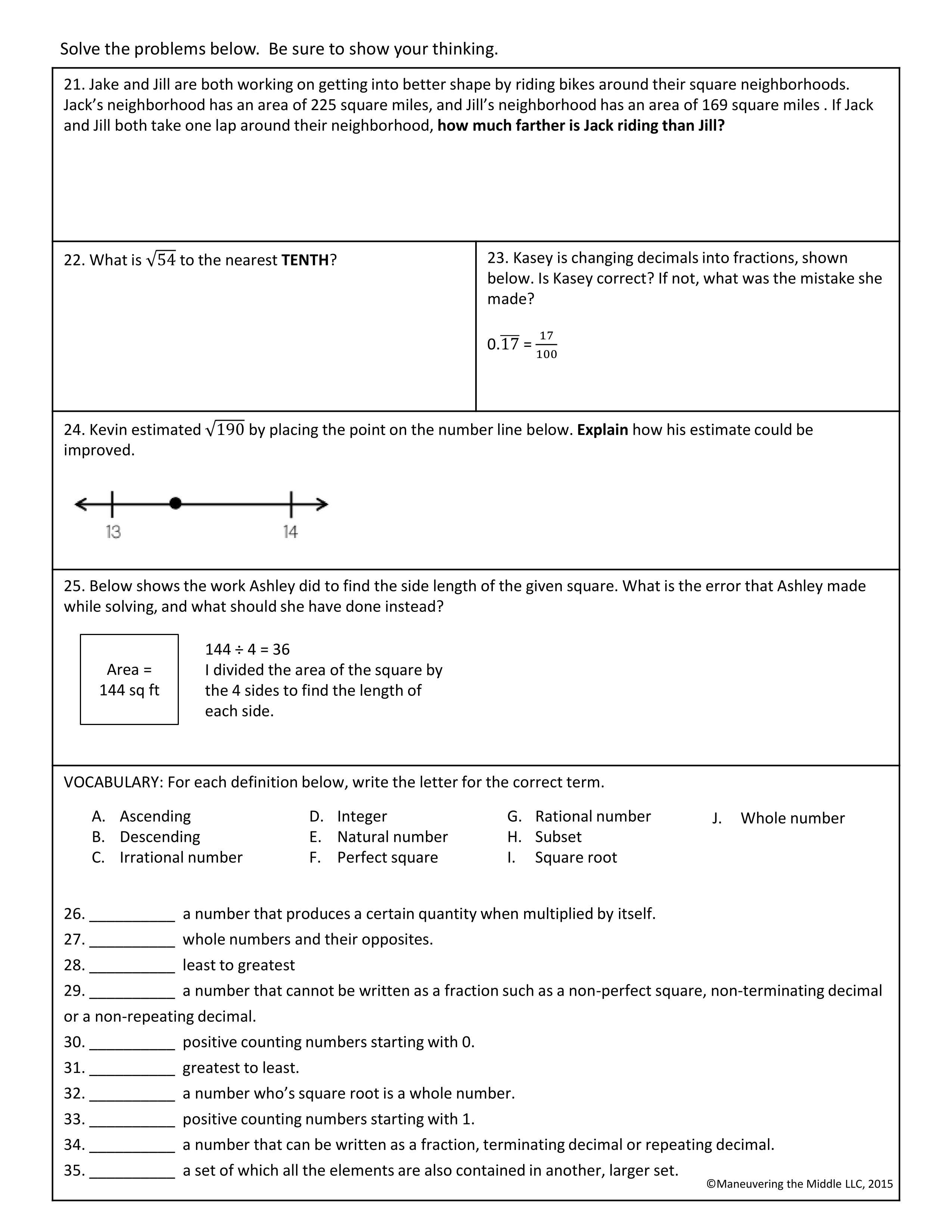 Unit 1 Test Real Number Systems Test (8th Grade) cloned 8/27/2019
