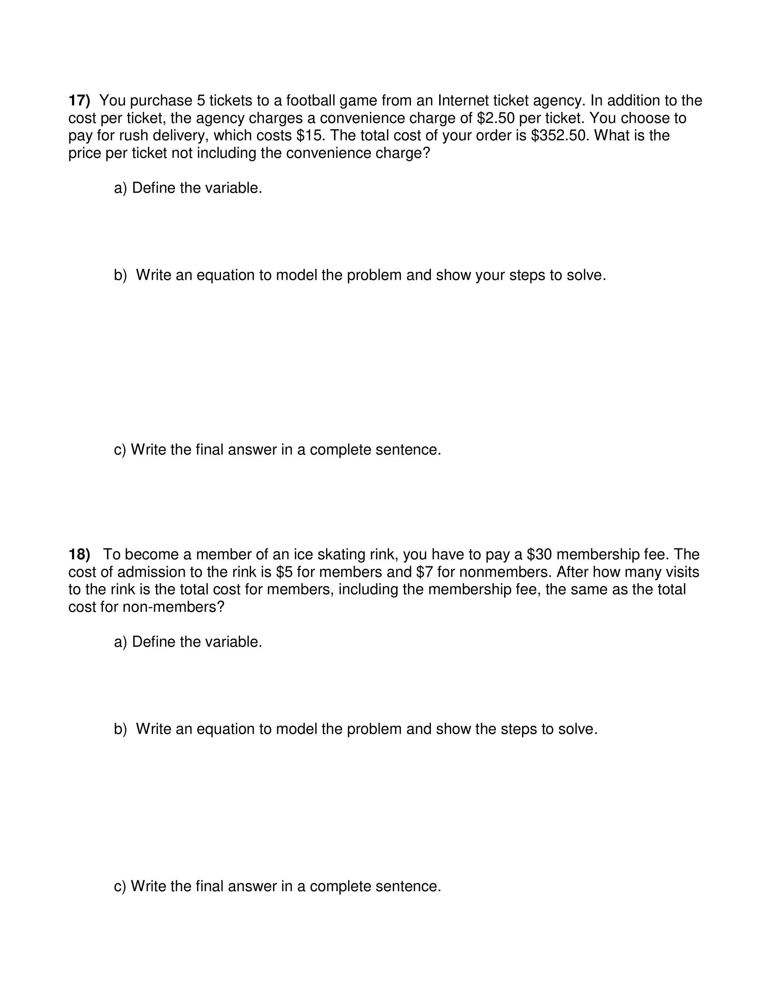 Remember, on your test, you will have to use a complete sentence (The cost per ticket was...), but here, just enter the number you get at the end.