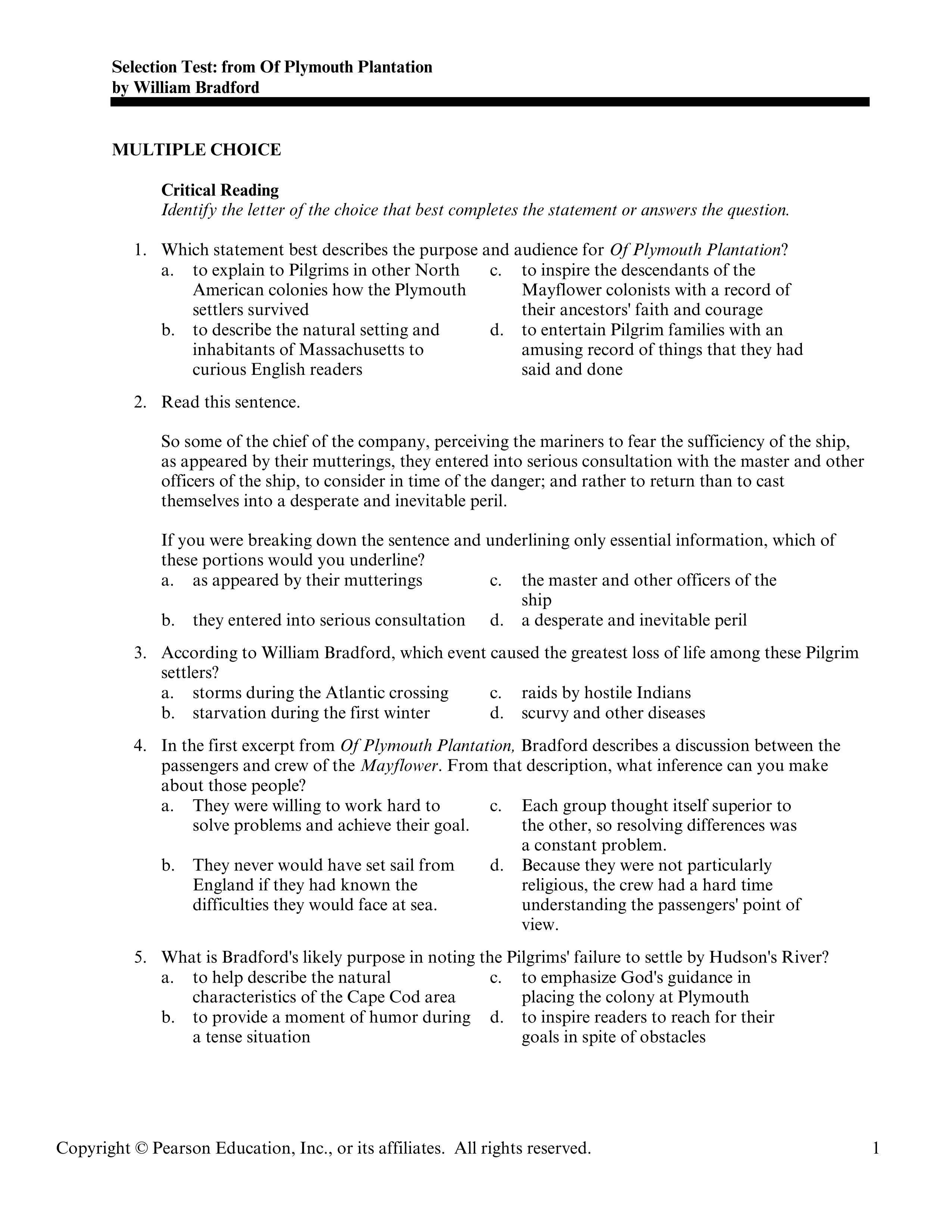 Plymouth Plantation Test