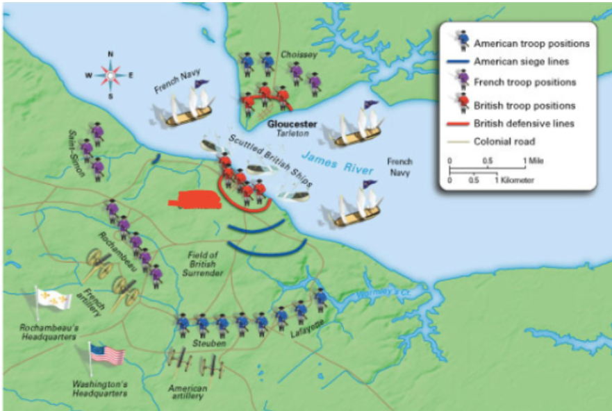 The map above shows British forces being surrounded by American and French forces. This map most likely represents which of the following?