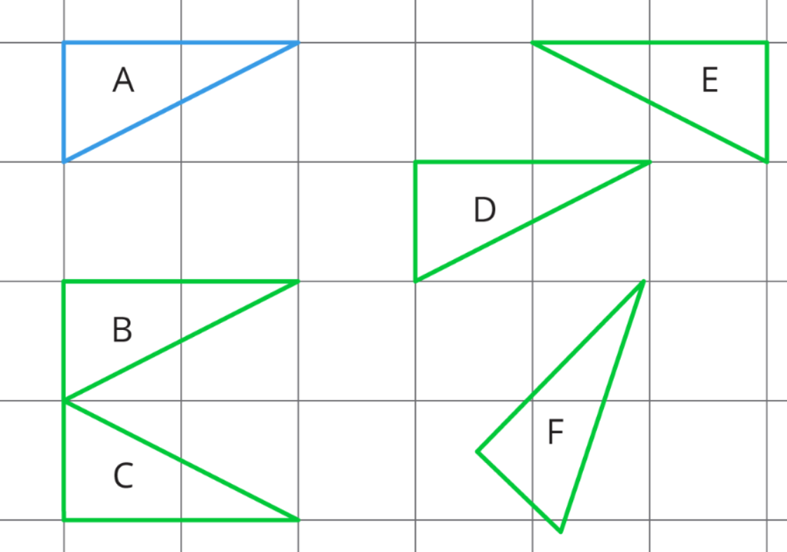 Which of these triangles are translations of Triangle A? Select all that apply.