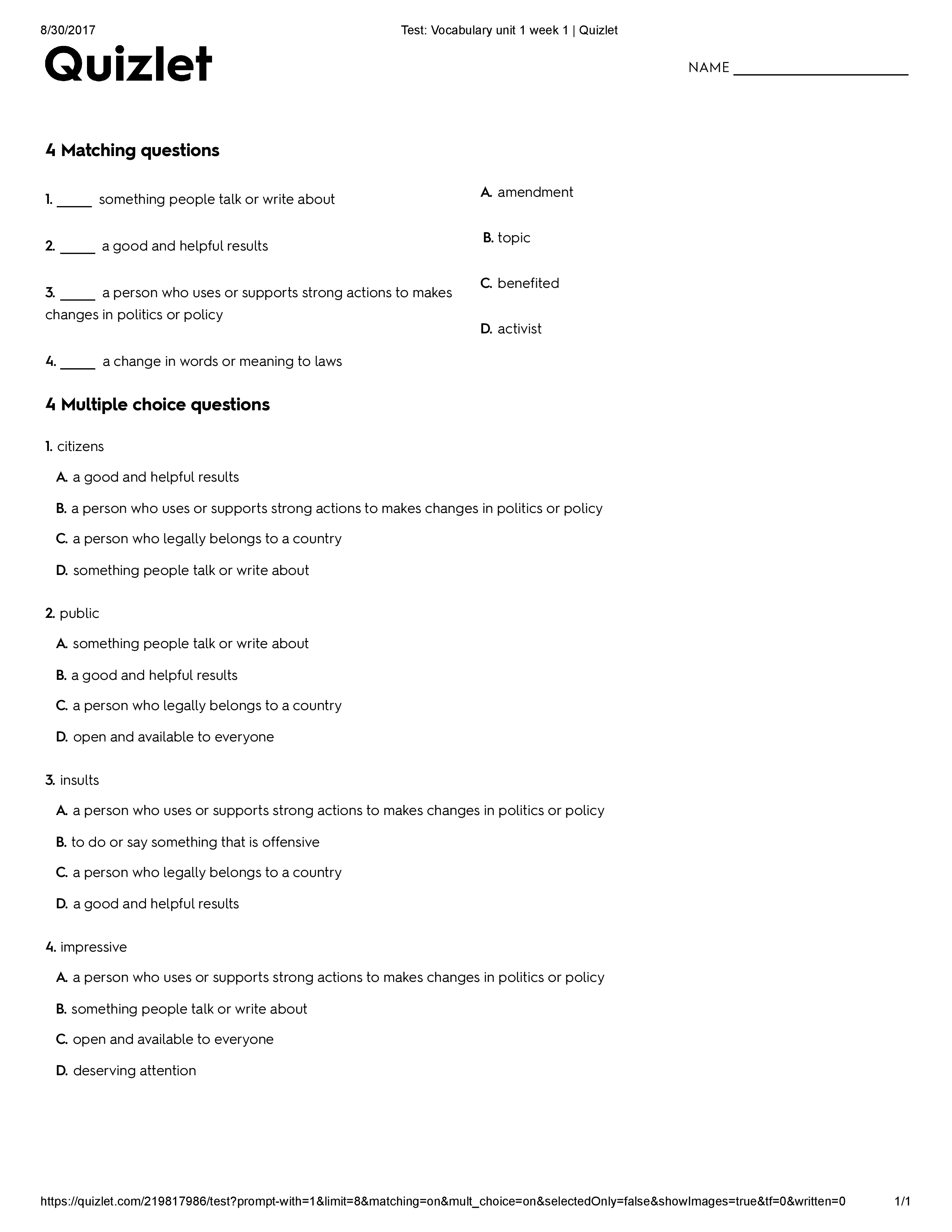 ELA Unit 1 Week 1 Vocabulary cloned 9/6/2019 cloned 9/6/2019