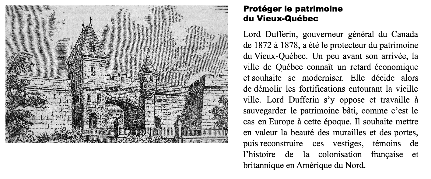 Après avoir analysé ce document, identifie les deux critères en vertu desquels Lord Dufferin s’oppose à la destruction des fortifications de Québec. Justifiez votre choix à la question suivante.