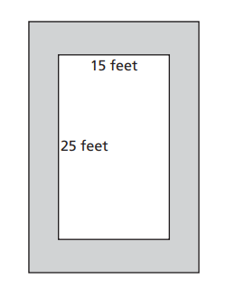 The Martins plan to add a rectangular pool to their backyard. Mr. Martin wants the pool to have a 4 foot deck around it. Mrs. Martin thinks the deck should be 8 feet wide. Refer to the diagram below: