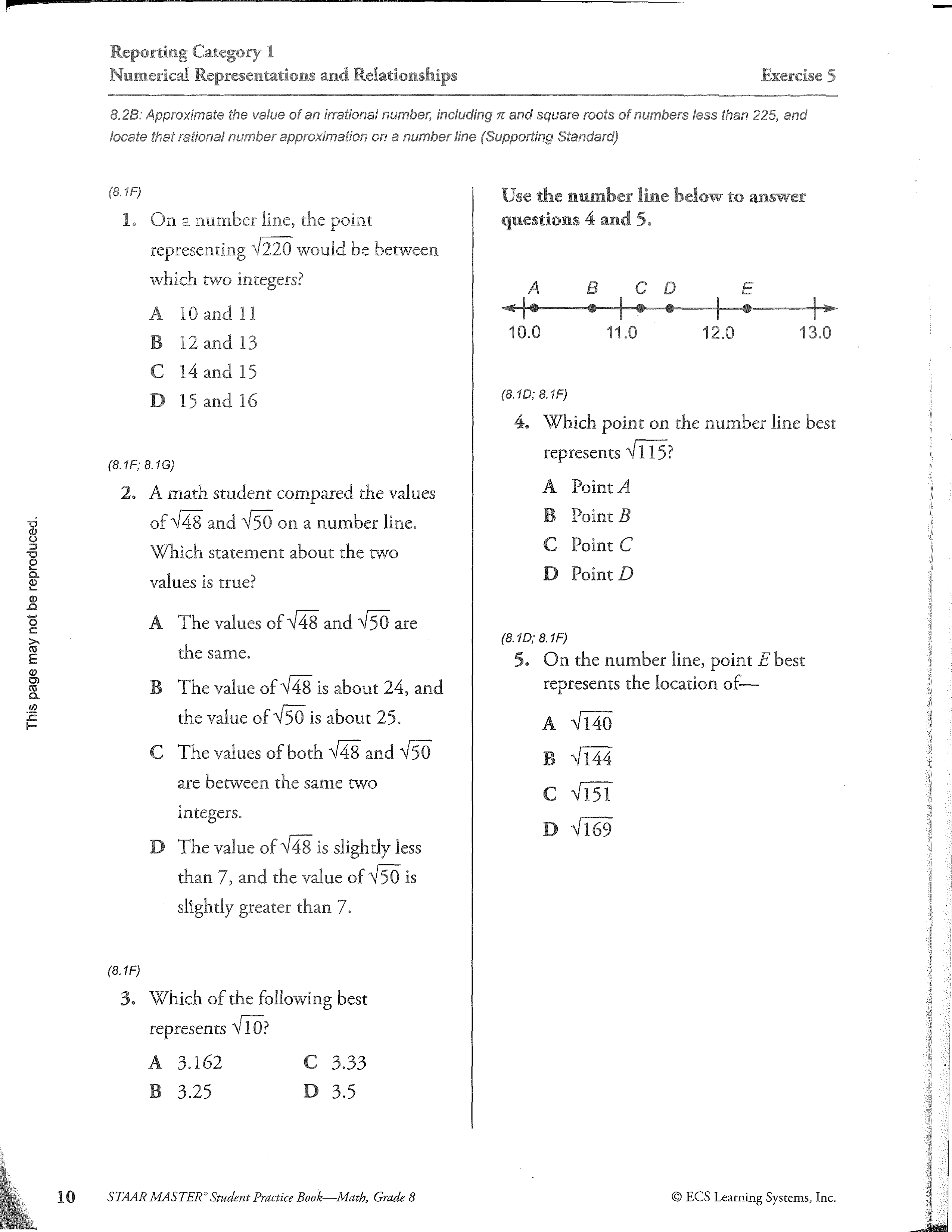 On a number line, the point representing the square root of 220 would be between which two integers?